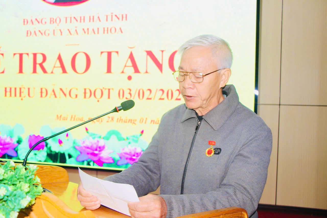 Trong đợt này, Đảng bộ xã Mai Hoa có 14 đảng viên vinh dự được nhận Huy hiệu 60, 55, 50, 45, 40 và 30 năm tuổi Đảng. Đây là sự ghi nhận xứng đáng của Đảng đối với quá trình rèn luyện, phấn đấu bền bỉ, những đóng góp quan trọng của các đảng viên trong sự nghiệp đấu tranh giải phóng dân tộc, xây dựng và bảo vệ Tổ quốc, cũng như trong công cuộc đổi mới đất nước.