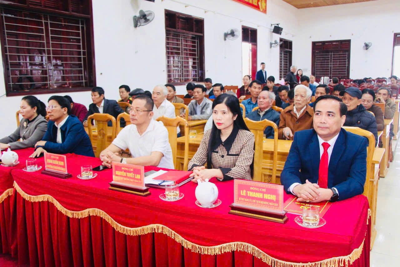 Phát biểu tại buổi lễ, đồng chí: Lê Thanh Nghị, Bí thư Đảng uỷ - Chủ tịch Hội đồng nhân dân xã nhấn mạnh, Huy hiệu Đảng là phần thưởng cao quý, thể hiện sự trân trọng của Đảng đối với những cống hiến, hy sinh và tinh thần trung kiên của các thế hệ đảng viên. Đồng chí bày tỏ lòng biết ơn sâu sắc đối với những đóng góp của các đảng viên lão thành trong các cuộc kháng chiến trường kỳ của dân tộc cũng như trong giai đoạn xây dựng quê hương thời kỳ đổi mới.