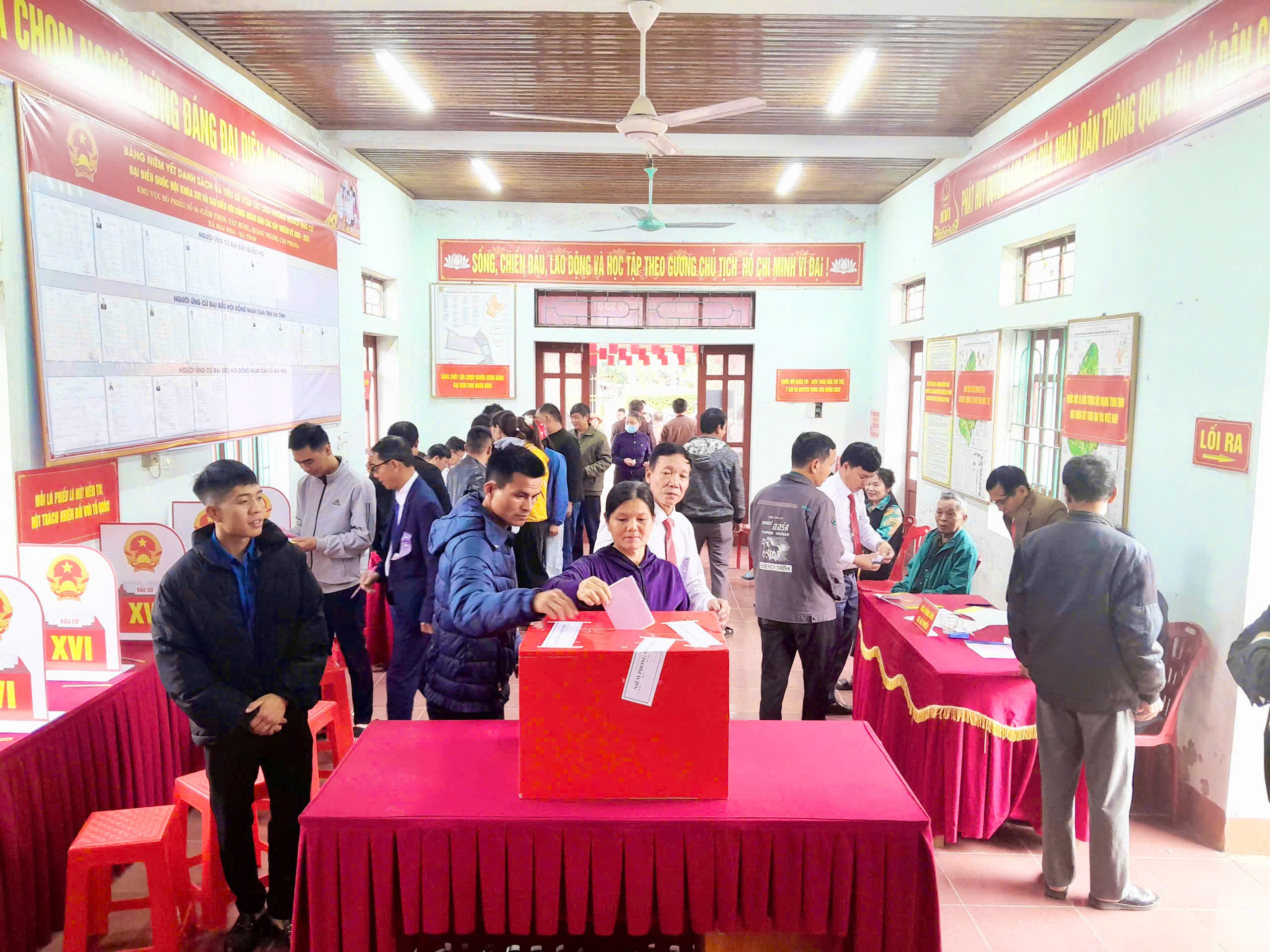 Đúng 6 giờ 30 phút, tại 9 điểm bỏ phiếu trên địa bàn xã Mai Hoa đã đồng loạt tổ chức lễ khai mạc bầu cử một cách ngắn gọn, trang trọng với một không khí hân hoan, sau khai mạc các cử tri cao tuổi đã bỏ những lá phiếu bầu đầu tiên trong ngày hội lớn của dân tộc.