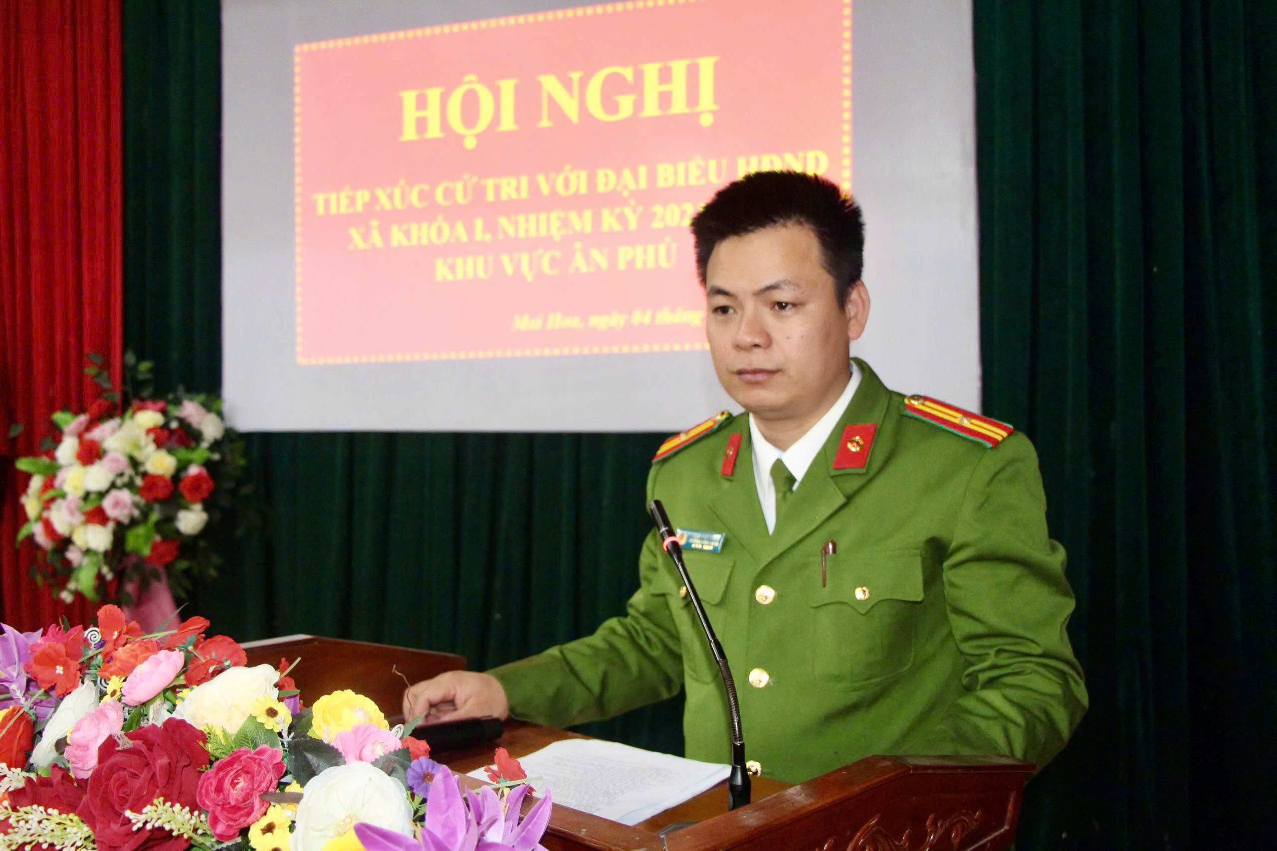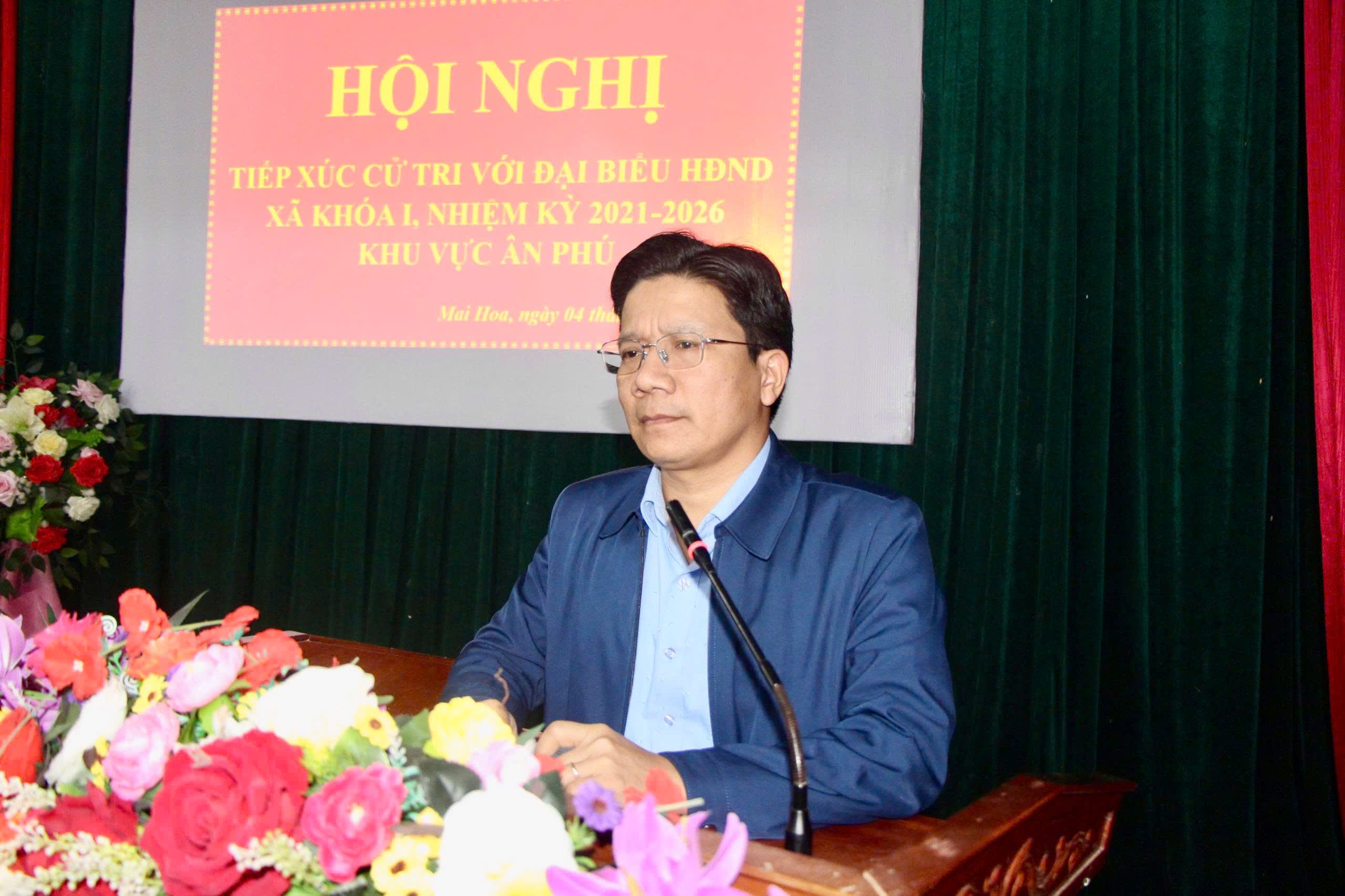 Tại hội nghị tiếp xúc cử tri Đ/c Phạm Ngọc Tạo, Chủ tịch UBND xã Mai Hoa đã tiếp thu, giải trình rõ các kiến nghị của cử tri, ghi nhận những ý kiến phát biểu tâm huyết, trách nhiệm của cử tri. Những kiến nghị, đề xuất không thuộc thẩm quyền, tổ đại biểu sẽ tiếp thu, tổng hợp, phân loại, trình lên kỳ họp sắp tới và các cấp, ngành xem xét, xử lý.