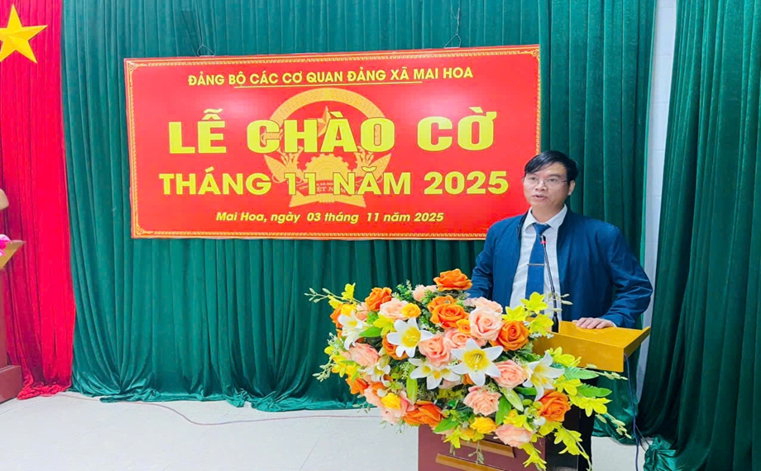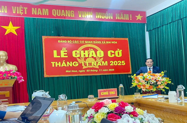 Sáng ngày 03/11/2025, Đảng bộ các cơ quan Đảng xã Mai Hoa đã tổ chức Lễ chào cờ đầu tháng 11 trong không khí trang nghiêm, ý nghĩa. Tham dự buổi lễ có đồng chí Lê Thanh Nghị, Bí thư Đảng uỷ, Chủ tịch HĐND xã, BCH Đảng bộ các cơ quan Đảng và toàn thể cán bộ, đảng viên, công chức, người lao động thuộc các cơ quan Đảng của xã.