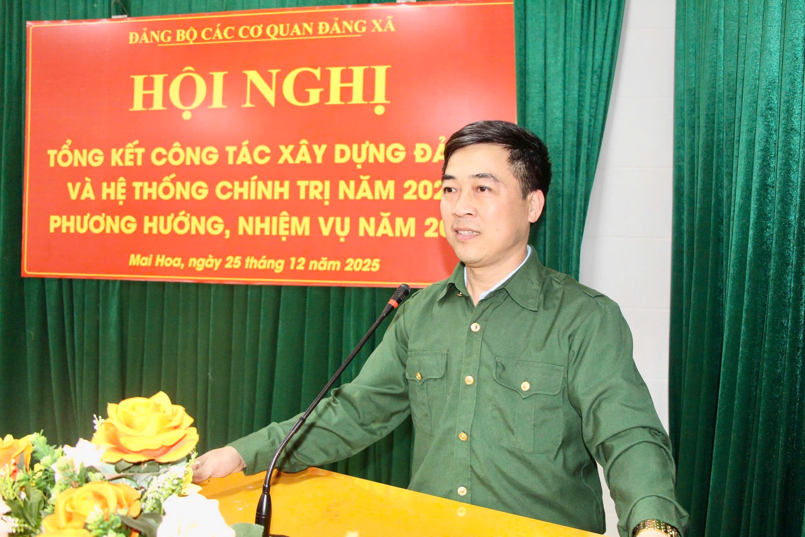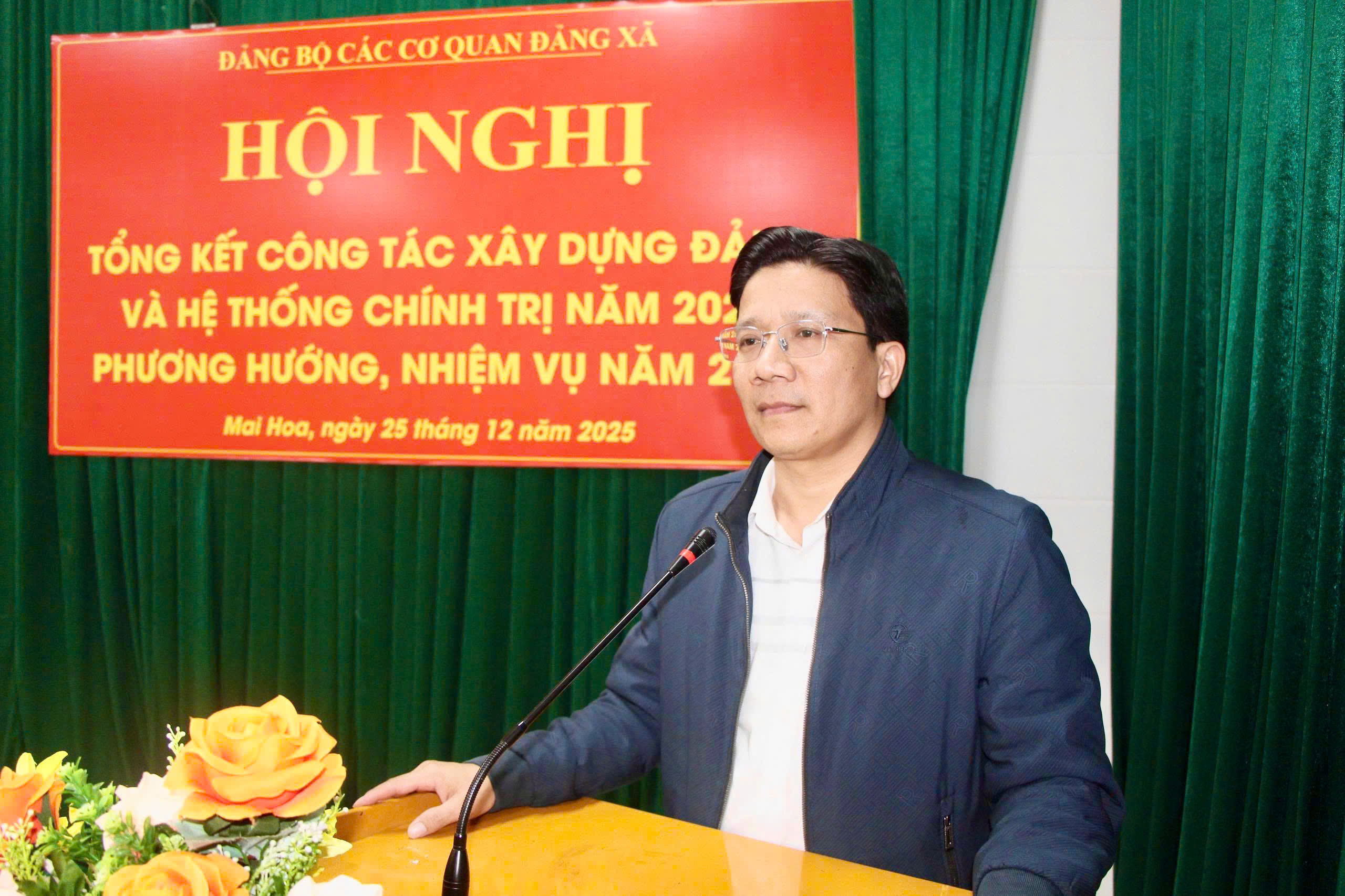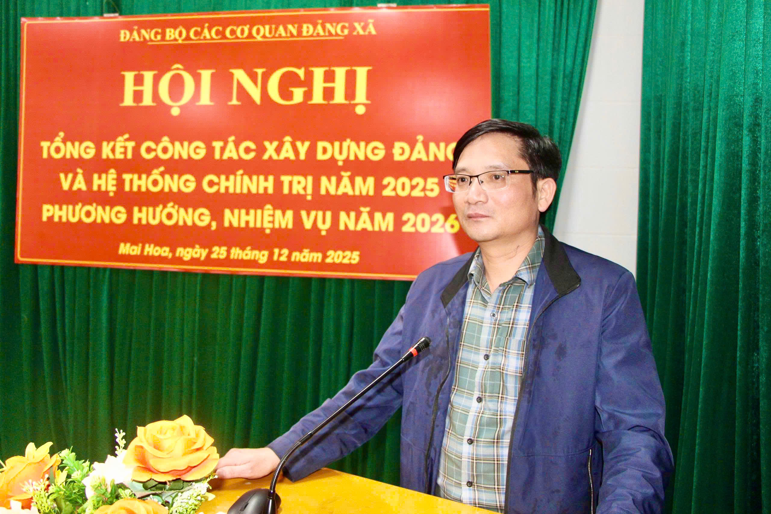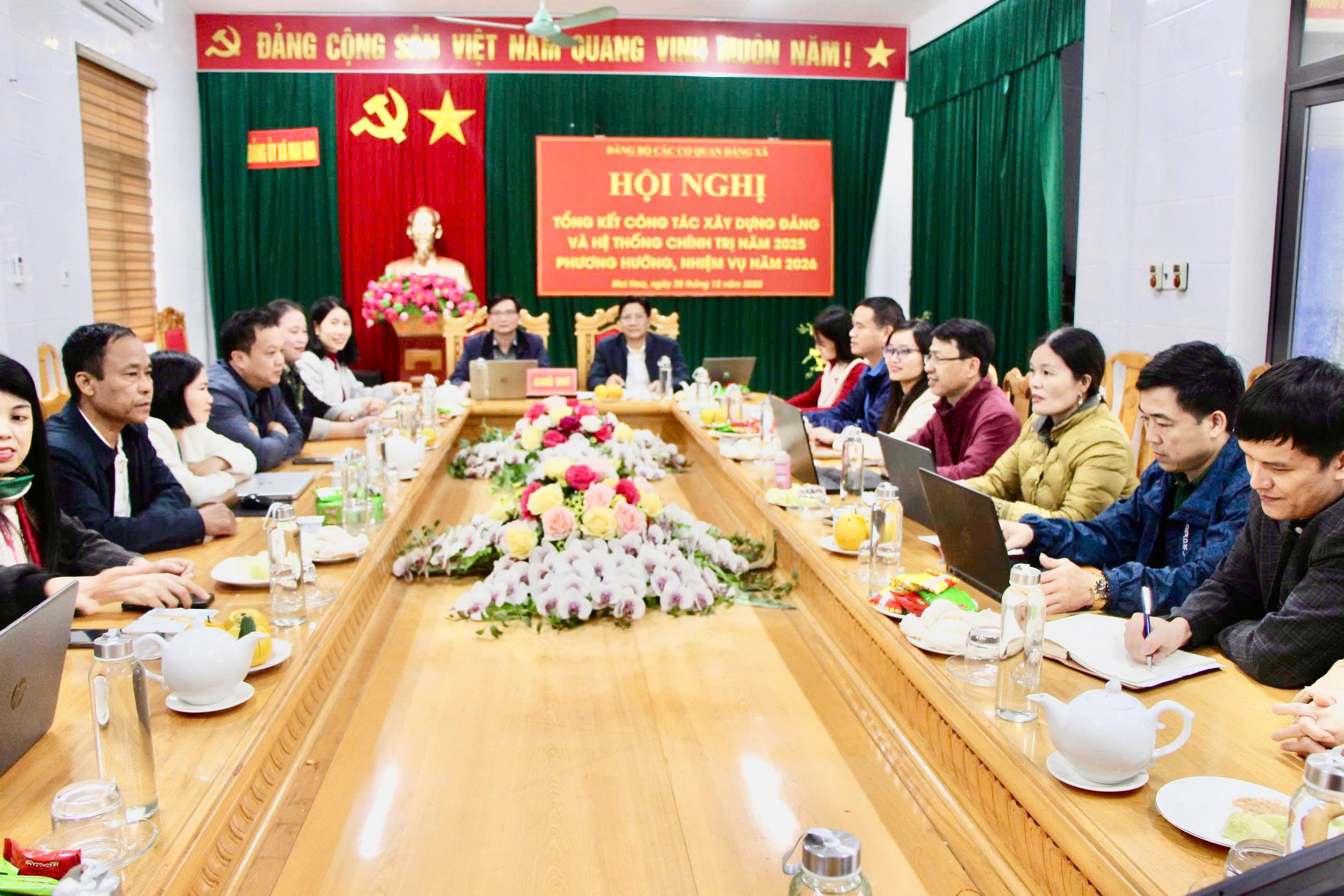 Đ/c Phạm Duy Đạt, Phó bí thư Đảng bộ các cơ quan Đảng; Đ/c Nguyễn Anh Nhật, UVBCH Đảng bộ các cơ quan Đảng xã Mai Hoa chủ trì hội nghị