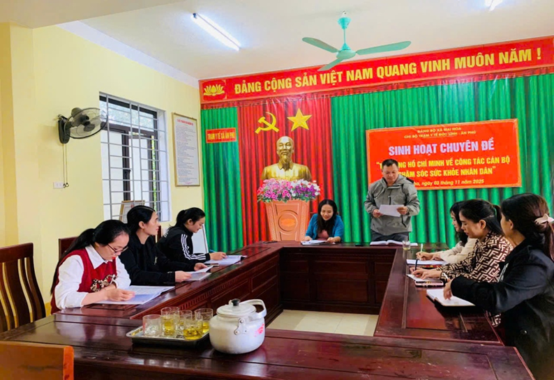 Một số chi bộ khác lựa chọn sinh hoạt chuyên đề về tư tưởng Hồ Chí Minh đối với công tác cán bộ và chăm sóc sức khỏe nhân dân. Nội dung sinh hoạt làm rõ quan điểm của Người về vai trò then chốt của cán bộ, đòi hỏi cán bộ phải có phẩm chất đạo đức, tinh thần trách nhiệm và gần dân, hiểu dân. Về chăm sóc sức khỏe nhân dân, các chi bộ thảo luận những giải pháp nâng cao chất lượng dịch vụ y tế cơ sở, chăm lo sức khỏe cho người dân, đặc biệt là đối tượng chính sách, hộ nghèo, người cao tuổi.