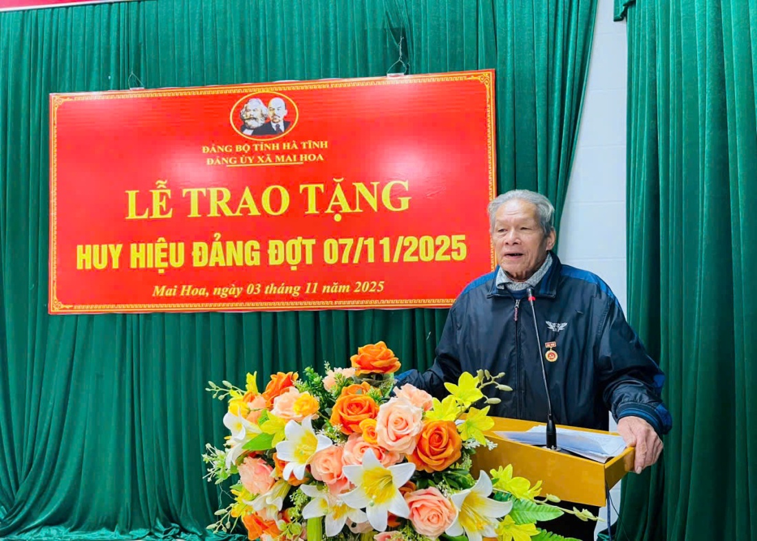 Phát biểu tại buổi lễ, lãnh đạo Đảng ủy xã Mai Hoa đánh giá cao vai trò nêu gương của các đảng viên lão thành, đồng thời mong muốn các đồng chí tiếp tục phát huy phẩm chất, đạo đức cách mạng; tuyên truyền, giáo dục thế hệ trẻ về truyền thống tốt đẹp của Đảng; đóng góp tích cực vào sự phát triển của địa phương.