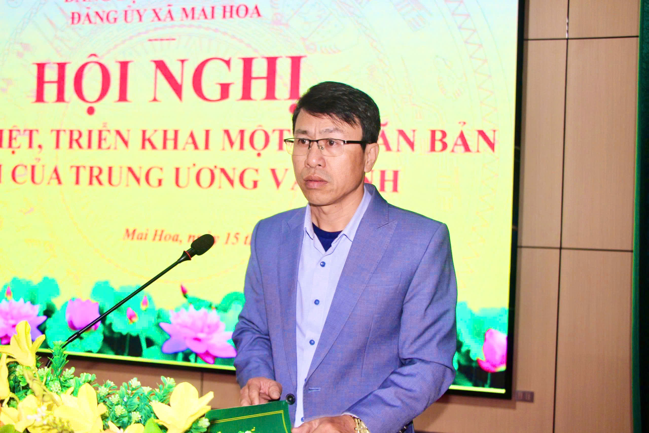 Tại hội nghị đã nghe đồng chí Nguyễn Anh Tuấn, Phó chủ tịch UBND xã quán triệt, triển khai Chỉ thị 52-CT/TW, ngày 03/10/2025 của Ban bí thư về thực hiện bảo hiểm y tế toàn dân trong giai đoạn mới. Kết luận số 219-KL/TW ngày 26/11/2025 của Bộ chính trị về tiếp tục thực hiện Nghị quyết số 19-NQ/TW, ngày 16/6/2022 của Ban chấp hành Trung ương Đảng khóa XIII về nông nghiệp, nông dân, nông thôn đến năm 2030, tầm nhìn đến năm 2045.