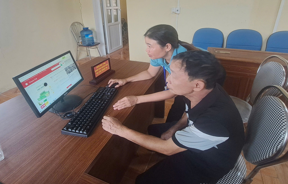 Cán bộ tại Trung tâm Phục vụ hành chính công xã Mai Hoa đang hướng dẫn người dân các thao tác nộp hồ sơ trực tuyến