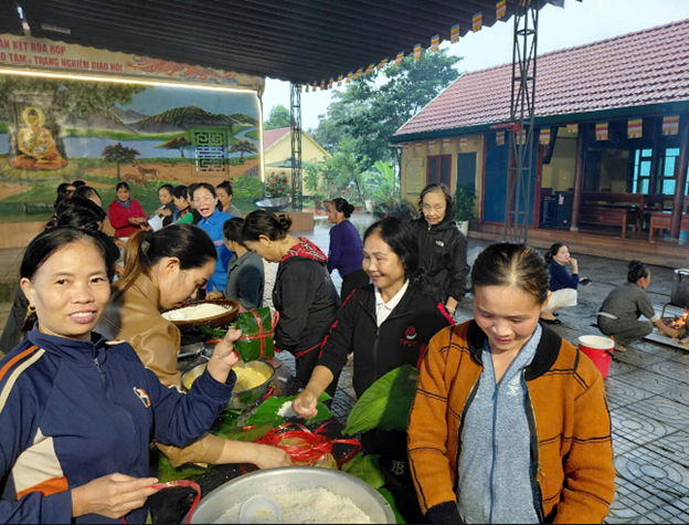 Với sự đồng lòng, nhiệt huyết của phụ nữ và nhân dân trên địa bàn, không khí làm việc diễn ra khẩn trương, chan chứa sự sẻ chia. Mỗi người một việc, từ khâu sơ chế đến gói bánh, đều được thực hiện bằng tất cả tấm lòng hướng về đồng bào vùng lũ.