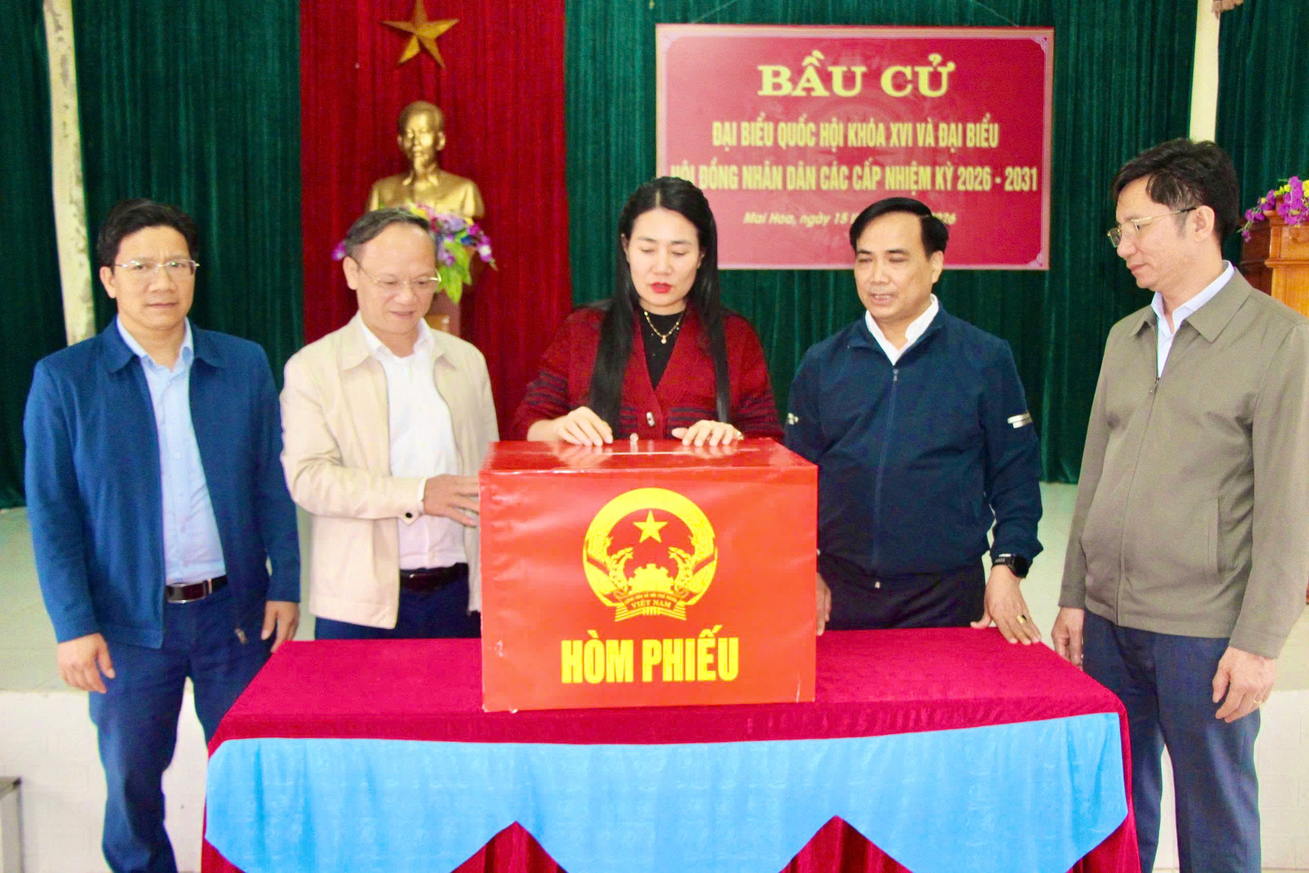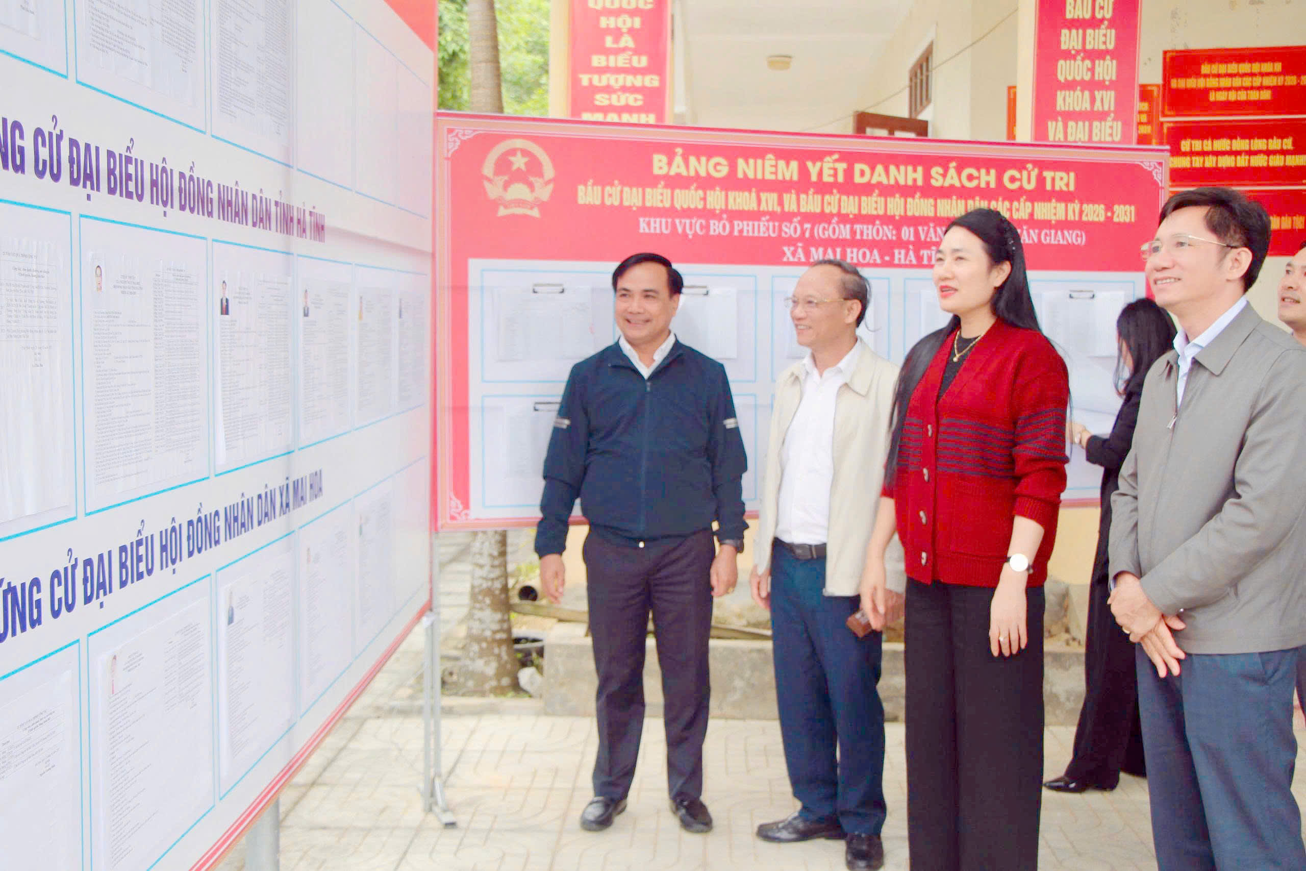 Qua kiểm tra thực tế tại các khu vực bỏ phiếu, đồng chí Phó Chủ tịch Hội đồng nhân dân tỉnh biểu dương, ghi nhận và đánh giá cao công tác chuẩn bị cho công tác bầu cử của xã Mai Hoa, cơ sở vật chất tại các khu vực bầu cử đáp ứng tốt yêu cầu: khu vực ghi phiếu và bỏ phiếu được bố trí khoa học, có phương án phân luồng hợp lý; nội quy phòng bỏ phiếu, danh sách ứng cử viên, tiểu sử tóm tắt được niêm yết tại vị trí dễ quan sát.