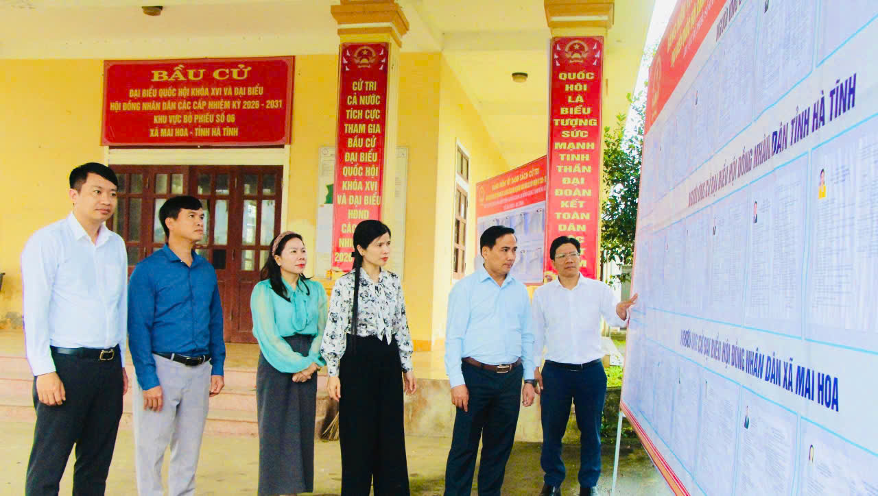 Ông Phạm Duy Đạt cùng Lãnh đạo xã Mai Hoa đi kiểm tra công tác chuẩn bị bầu cử