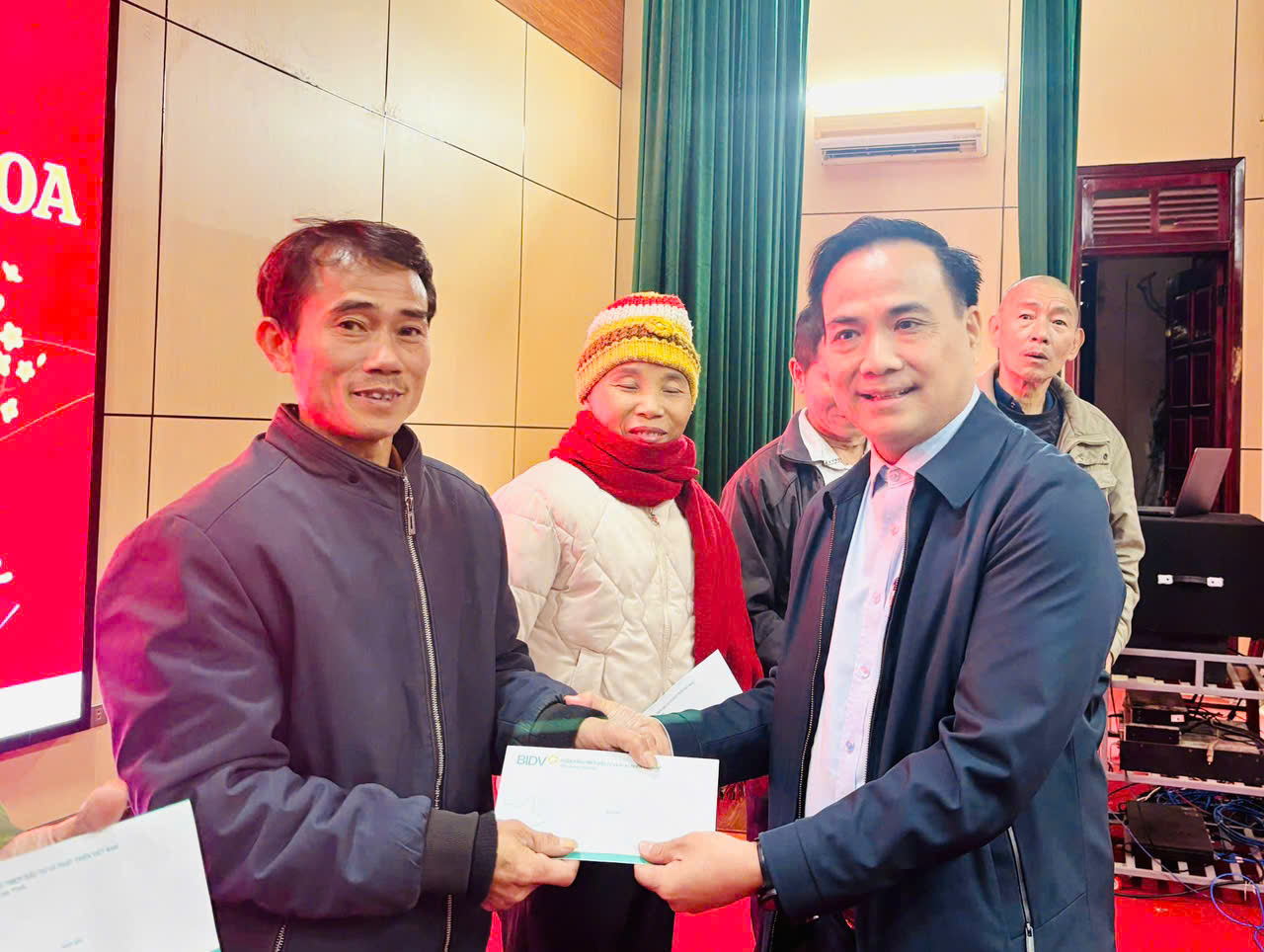 .....và đồng chí Lê Thanh Nghị, Bí thư Đảng uỷ - Chủ tịch HĐND xã đã ân cần thăm hỏi sức khoẻ, đời sống, chia sẻ những khó khăn, đồng thời chúc các gia đình đón năm mới vui vẻ, đầm ấm và hạnh phúc. Mong các gia đình tiếp tục vươn lên ổn định cuộc sống, thực hiện tốt nghĩa vụ của công dân và phong trào của địa phương.