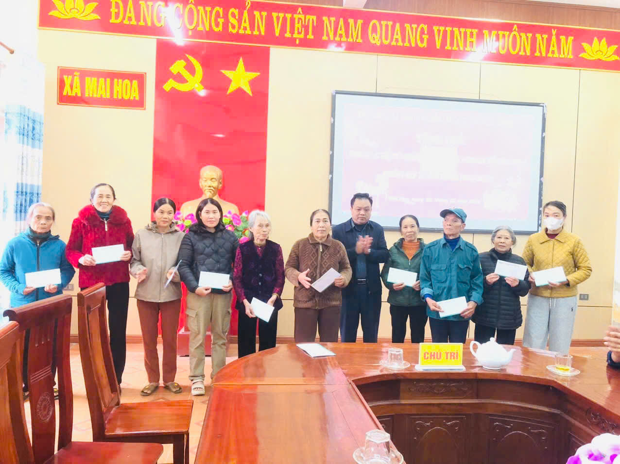 Tại chương trình, Đoàn đã trao 70 suất quà, mỗi suất trị giá 500.000 đồng, với tổng trị giá 35 triệu đồng. Những phần quà ý nghĩa đã kịp thời chia sẻ khó khăn, thể hiện sự quan tâm của Đảng, nhà nước và các cấp các ngành góp phần giúp các hộ gia đình có hoàn cảnh đặc biệt khó khăn trên địa bàn xã Mai Hoa đón Tết cổ truyền ấm áp, đủ đầy.