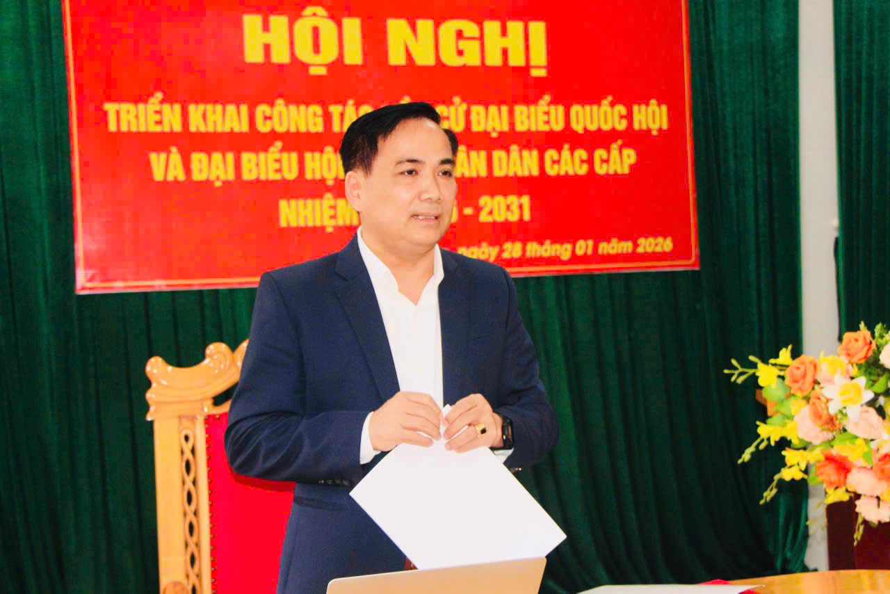 Đồng chí Lê Thanh Nghị, Bí thư Đảng ủy - Chủ tịch Hội đồng nhân dân xã, Trưởng ban Chỉ đạo bầu cử, Chủ tịch Ủy ban bầu cử xã chủ trì cuộc họp.