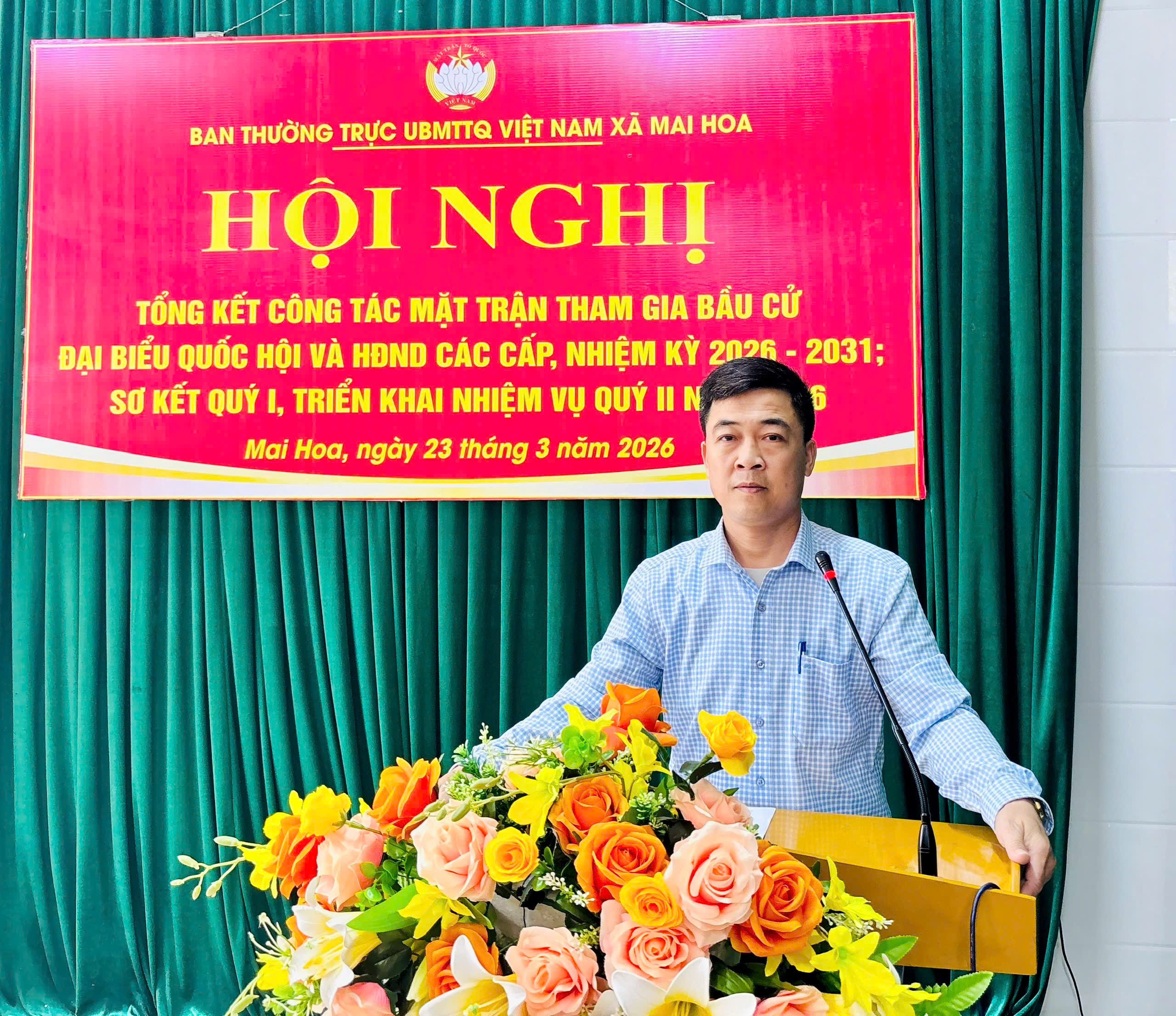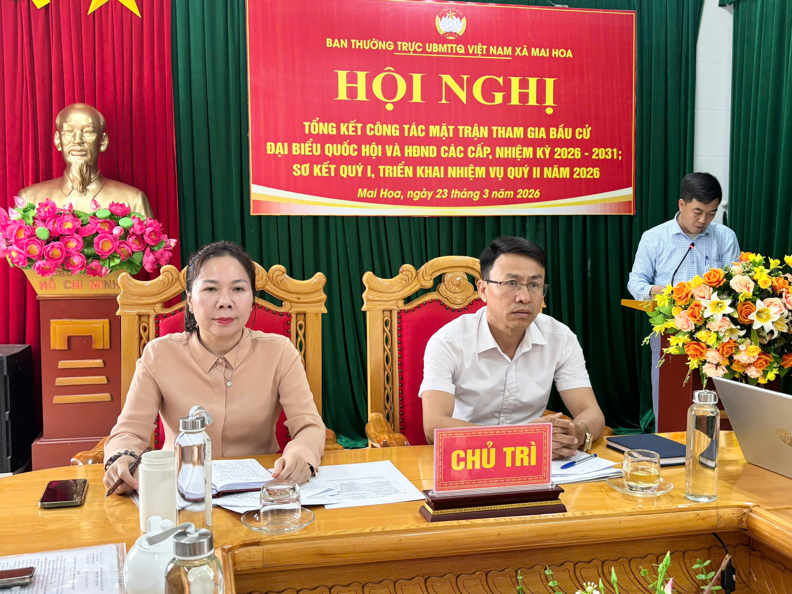 Trong cuộc bầu cử đại biểu Quốc hội khóa XVI và đại biểu Hội đồng nhân dân các cấp nhiệm kỳ 2026 - 2031 vừa qua, Ban Thường trực Ủy ban Mặt trận tổ quốc Việt Nam xã Mai Hoa đã phát huy tốt vai trò, trách nhiệm trong việc tham gia tổ chức và giám sát theo quy định, các Thông tri, hướng dẫn của cấp trên được triển khai đầy đủ, nghiêm túc và đúng quy trình.