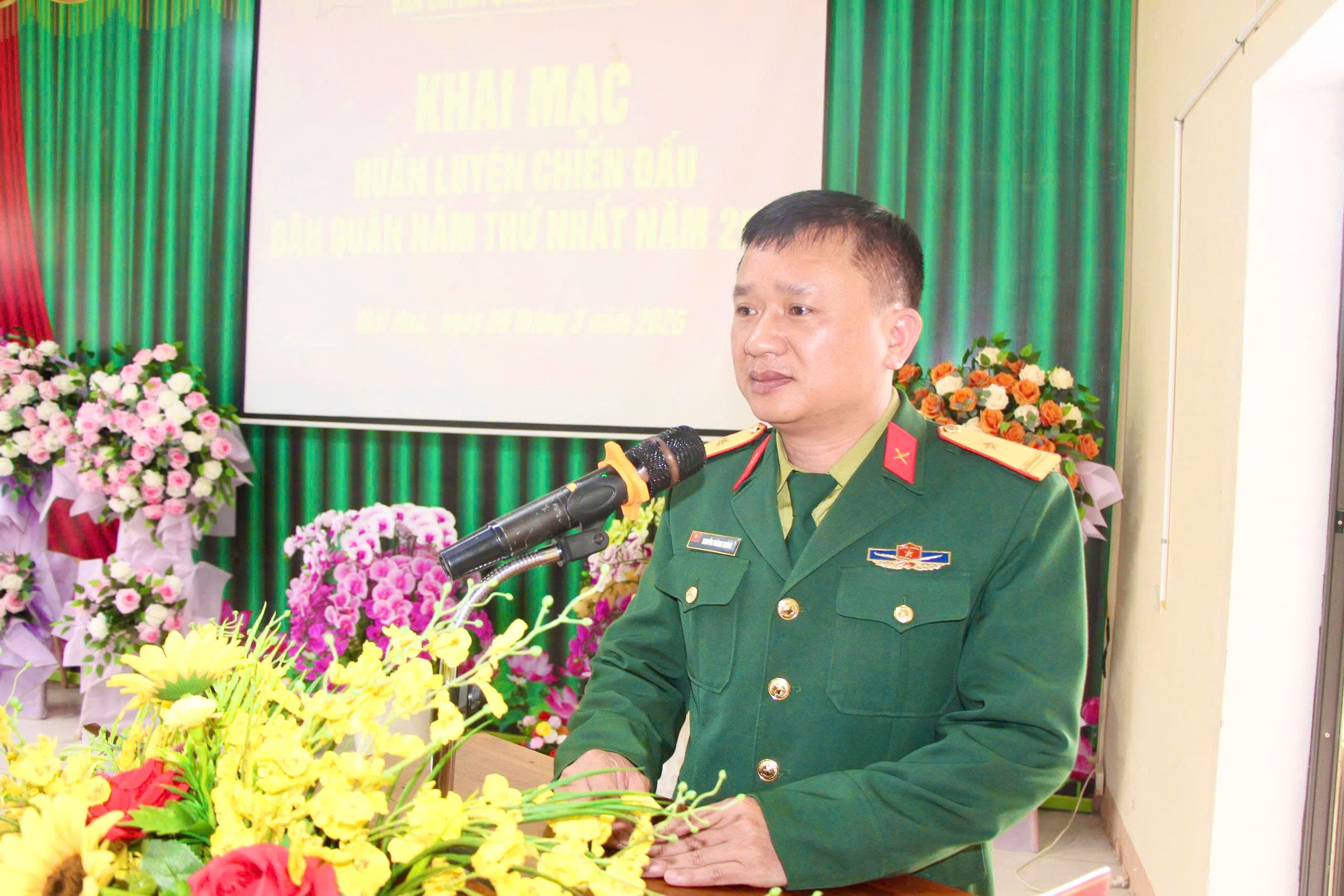 Phát biểu tại lễ khai mạc huấn luyện Trung tá Nguyễn Đình Hiệp, Phó chính uỷ Ban chỉ huy phòng thủ Khu vực 2 – Vũ Quang đánh giá cao công tác chuẩn bị và yêu cầu BCHQS xã Mai Hoa tổ chức huấn luyện chặt chẽ, đầy đủ nội dung, đúng thời gian quy định; quán triệt phương châm huấn luyện “Cơ bản, thiết thực, chất lượng”, bám sát yêu cầu nhiệm vụ của địa phương, nhất là chuẩn bị tốt giáo án; bảo đảm quân số, cơ sở vật chất, tư trang, thao trường bãi tập huấn luyện, đặc biệt là đảm bảo an toàn người vũ khí, khí tài.