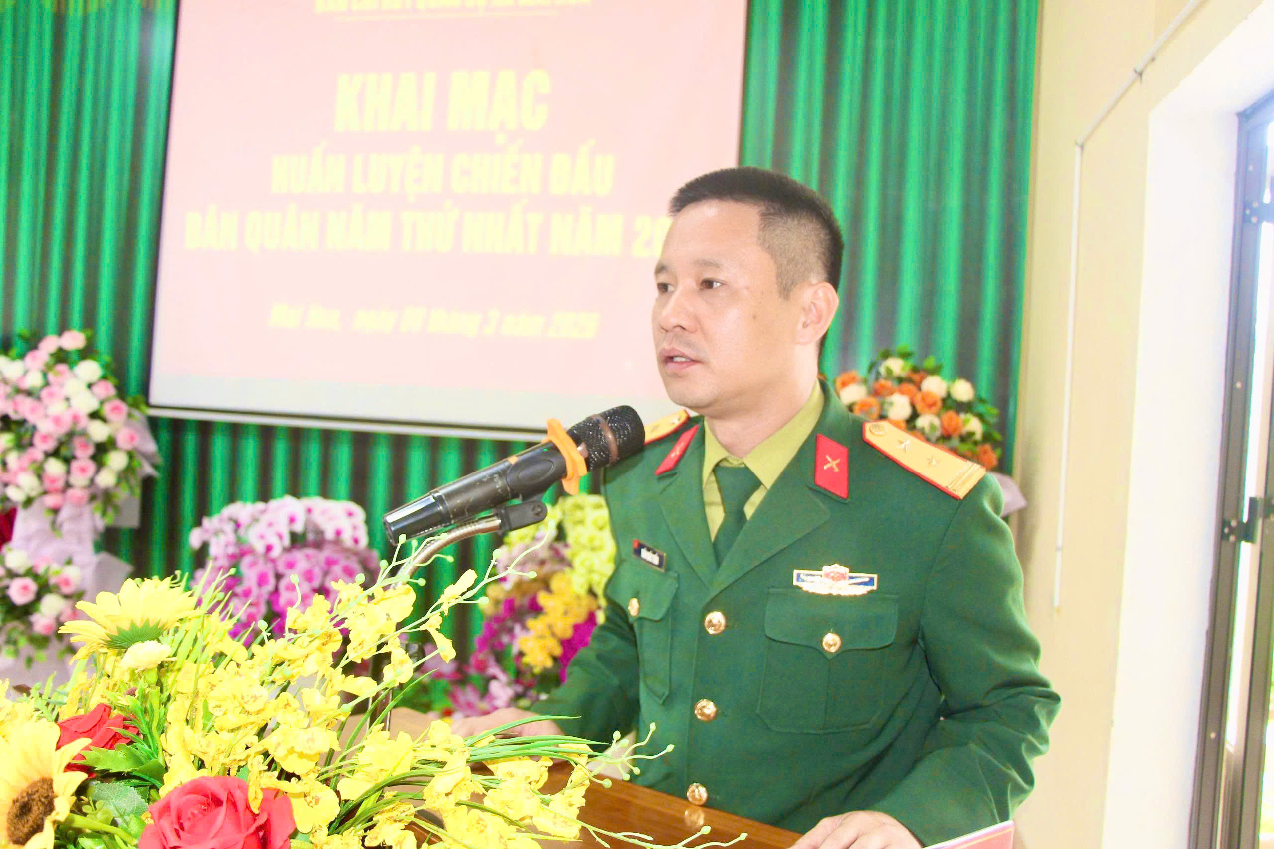Trung tá Trần Quốc Tuấn, Chỉ huy trưởng BCHQS xã Mai Hoa triển khai một số nội dung huấn luyện