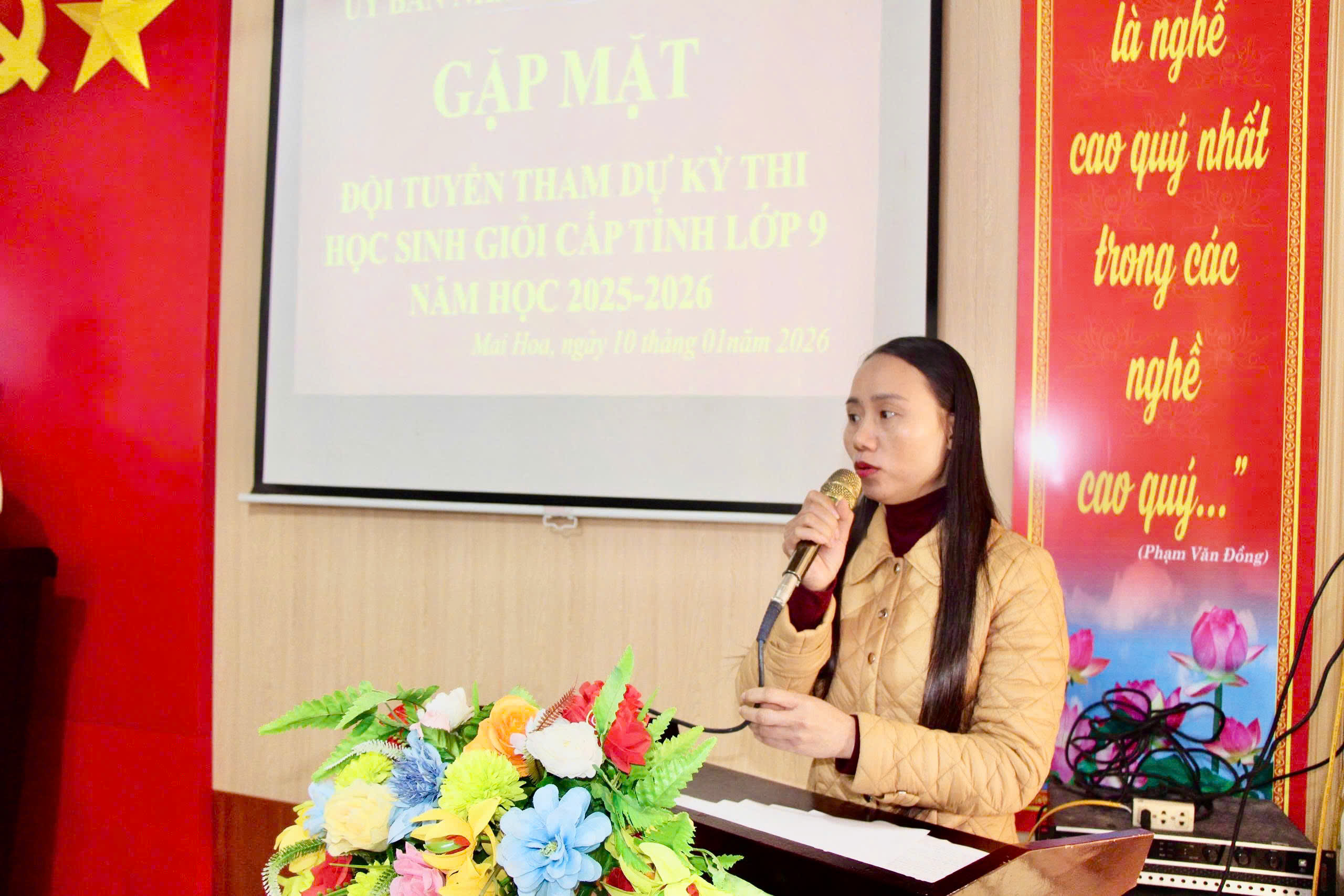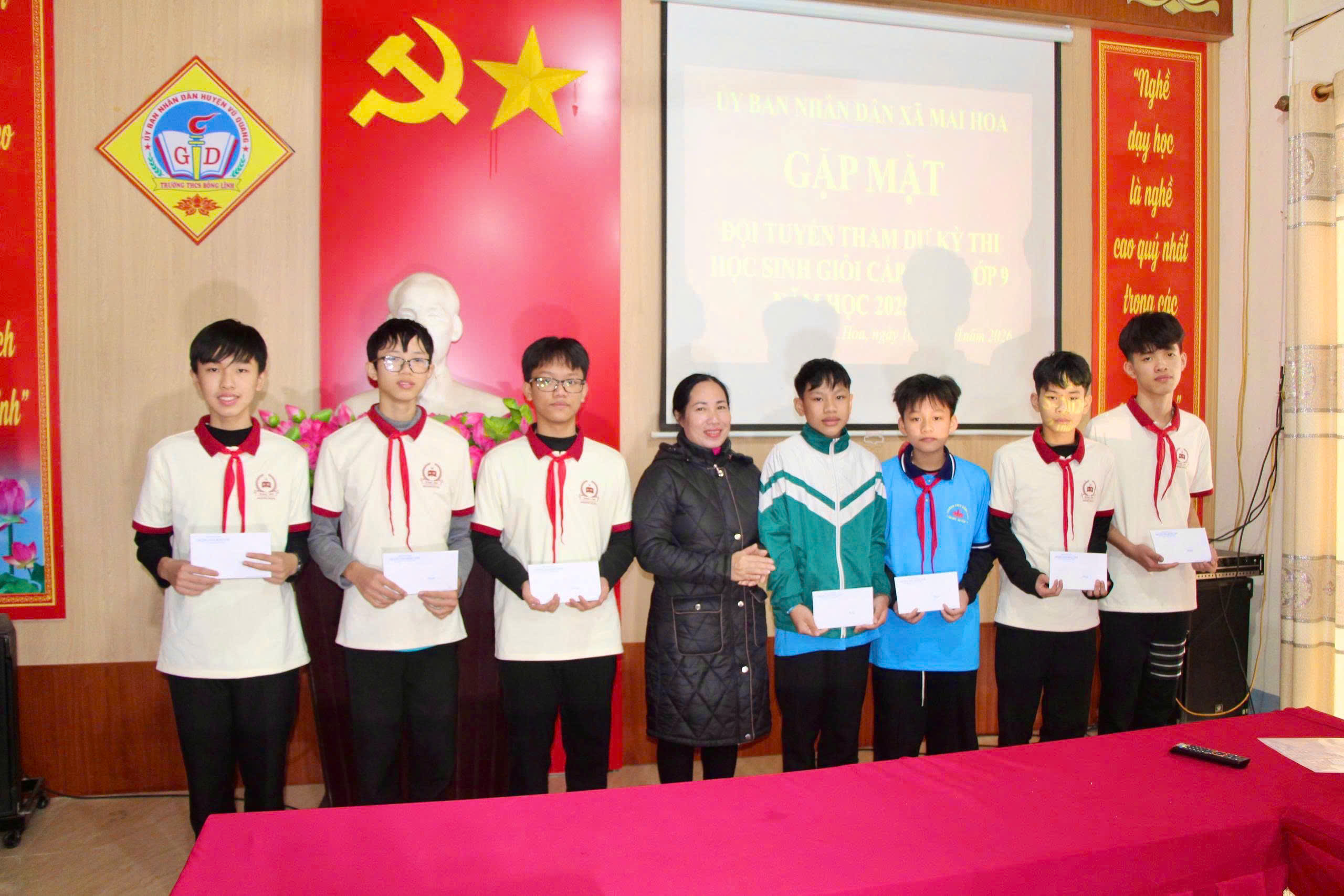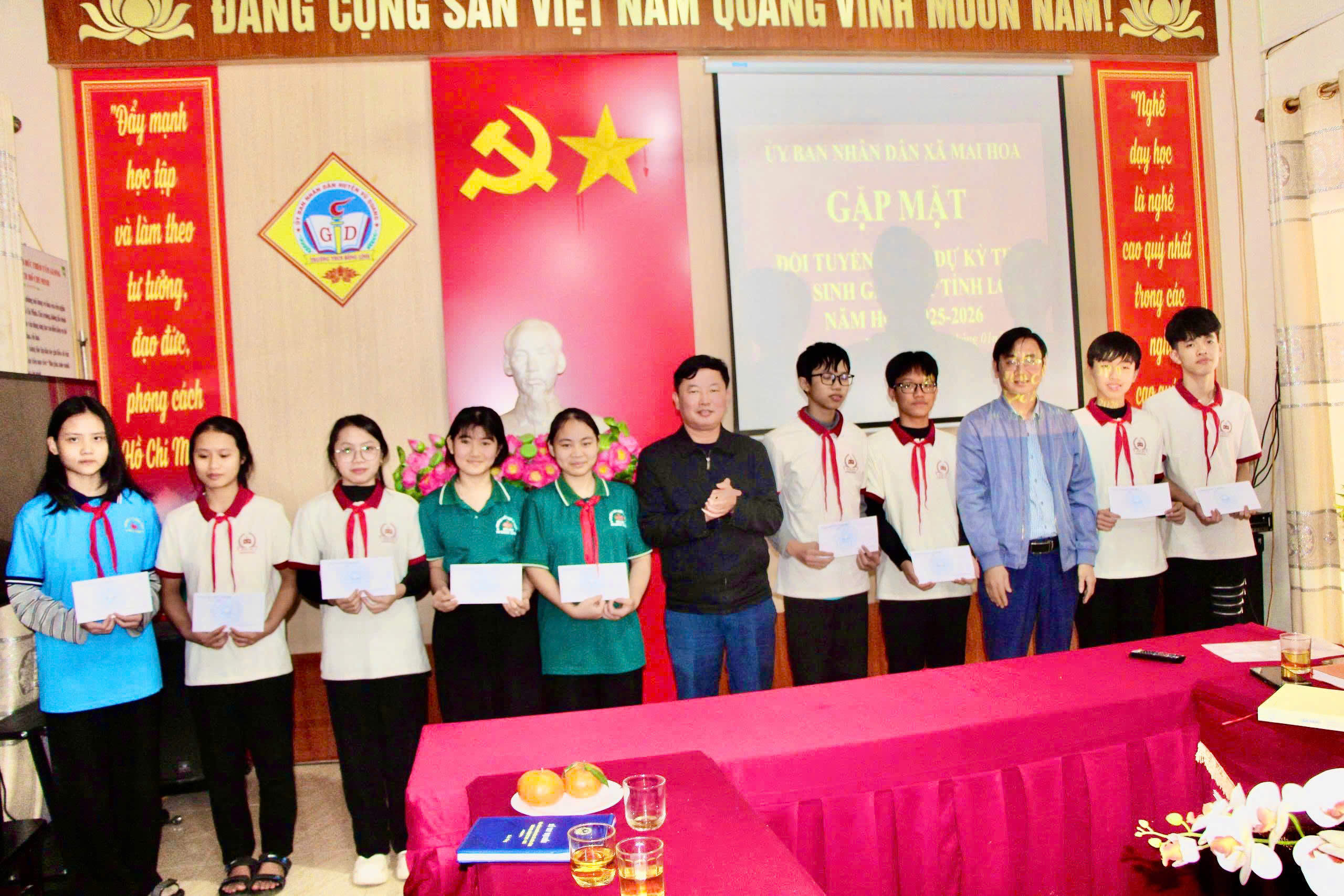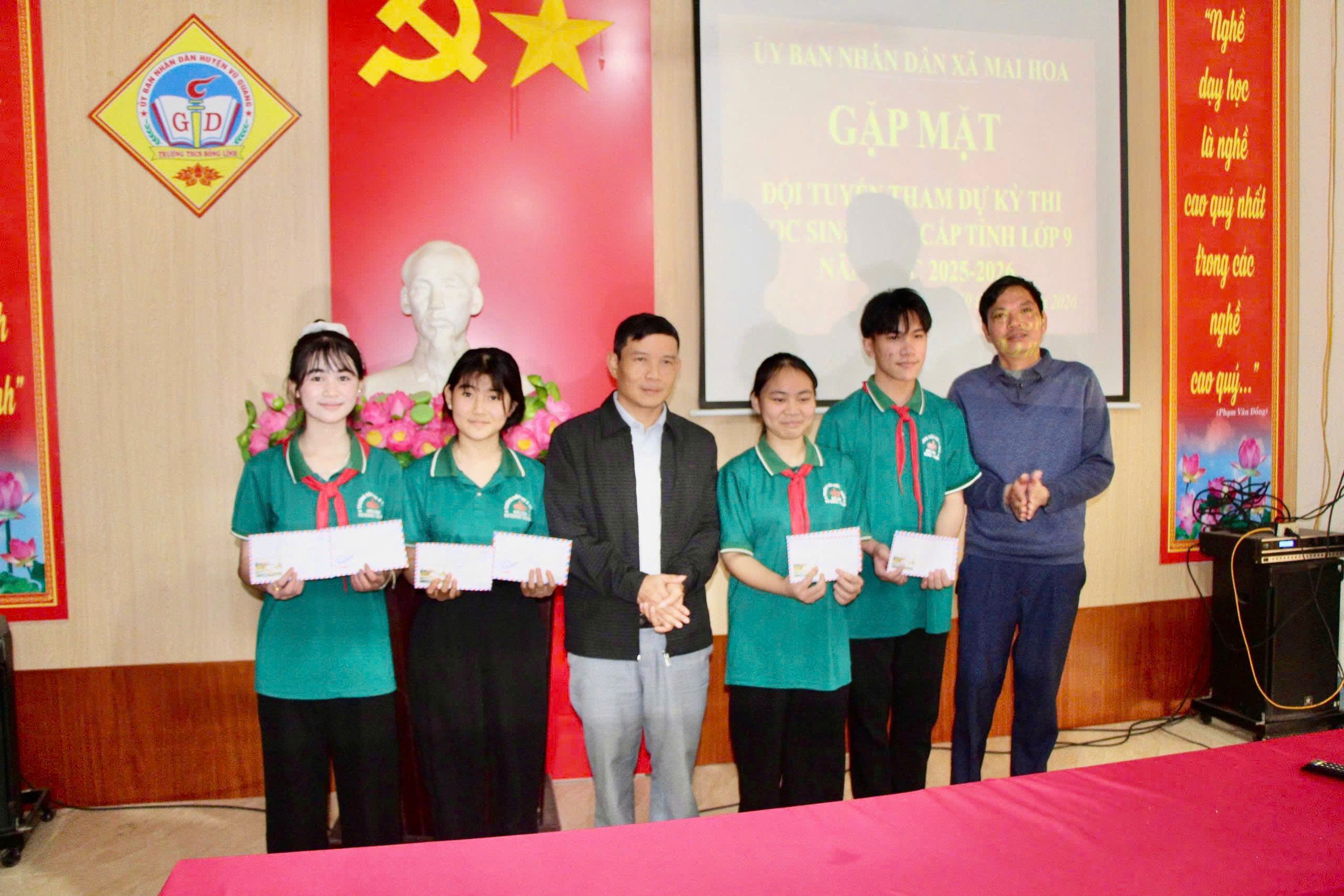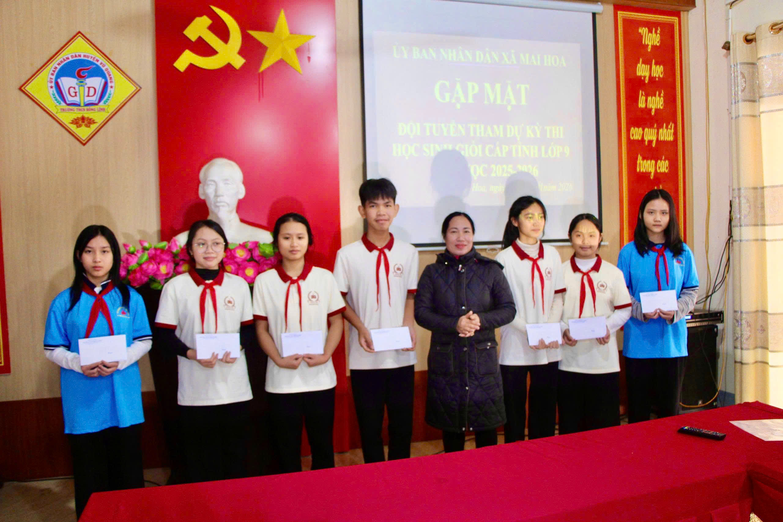 Năm học 2025 - 2026, được sự quan tâm chỉ đạo của cấp ủy, chính quyền và sự phối hợp, hỗ trợ của Phòng Văn hóa - Xã hội, sự quan tâm của các nhà trường, công tác bồi dưỡng học sinh giỏi trên địa bàn xã Mai Hoa tiếp tục được chú trọng. Qua các vòng tuyển chọn nghiêm túc, đã lựa chọn được 18 học sinh tiêu biểu khối lớp 9, trong đó THCS Bồng Lĩnh 14 em, Tiểu học và THCS Đức Lĩnh 4 em tham dự kỳ thi học sinh giỏi cấp tỉnh.