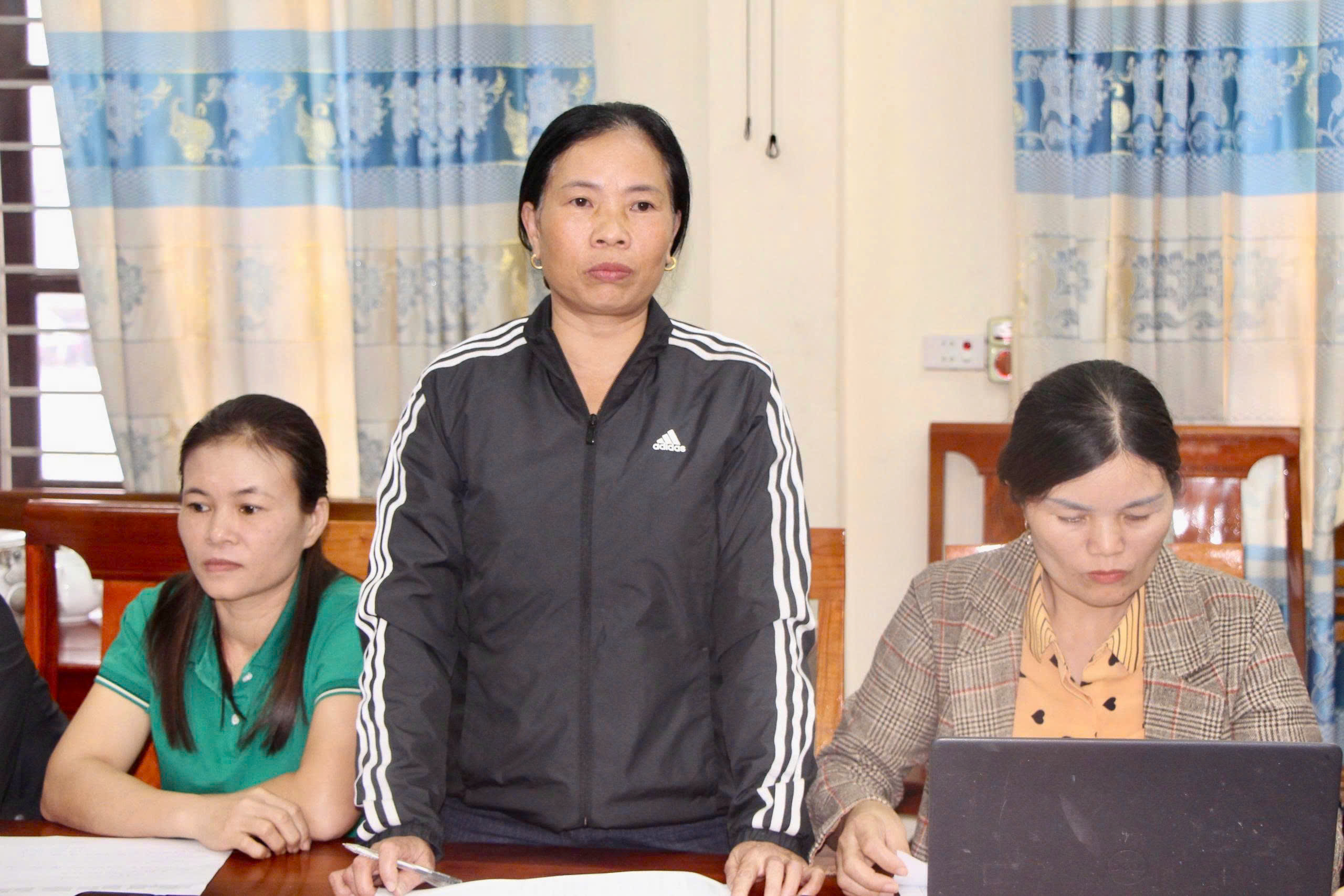 Lãnh đạo trạm y tế, các đại lý thu và cộng tác viên y tế trên địa bàn xã phát biểu tại cuộc họp
