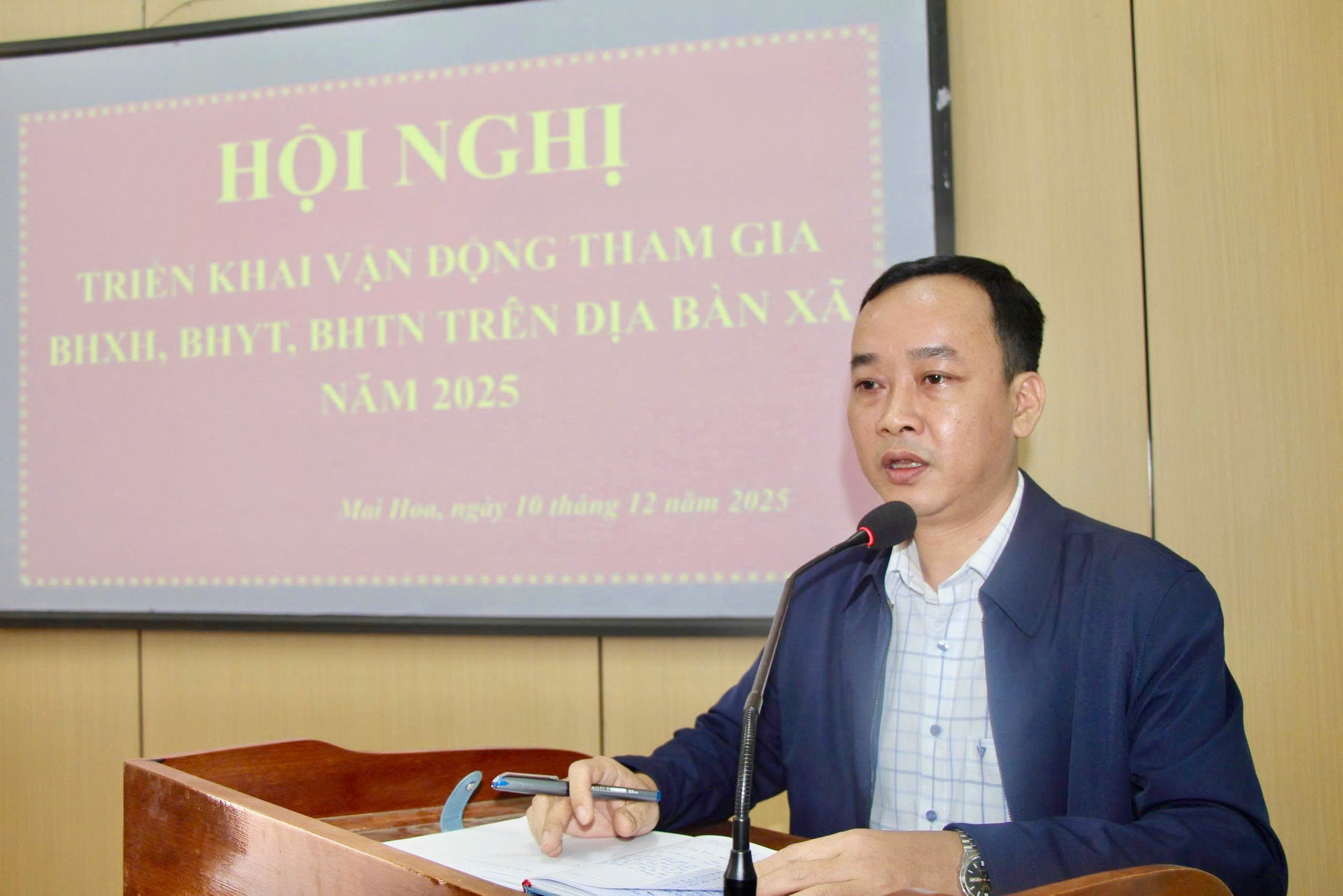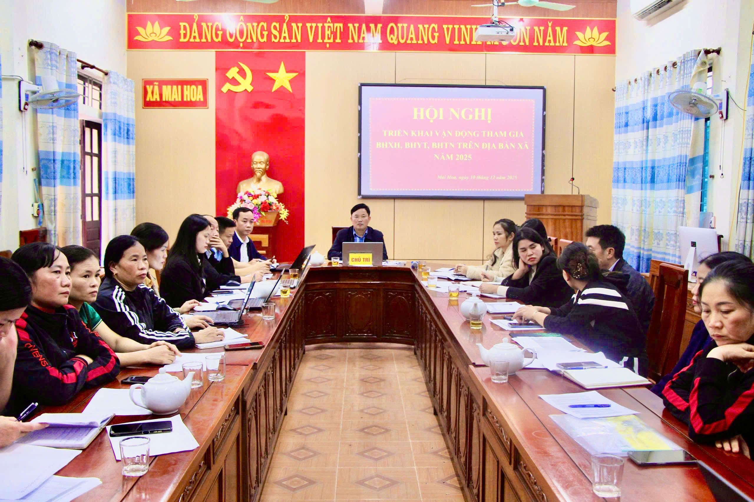 Trước thực tế đó tại cuộc họp UBND xã mai hoa đã chỉ đạo ra quân đợt cao điểm từ ngày 10 đến 31/12/2025, phấn đấu nâng tỷ lệ BHYT lên 98,5%, BHXH lên 29,5%.