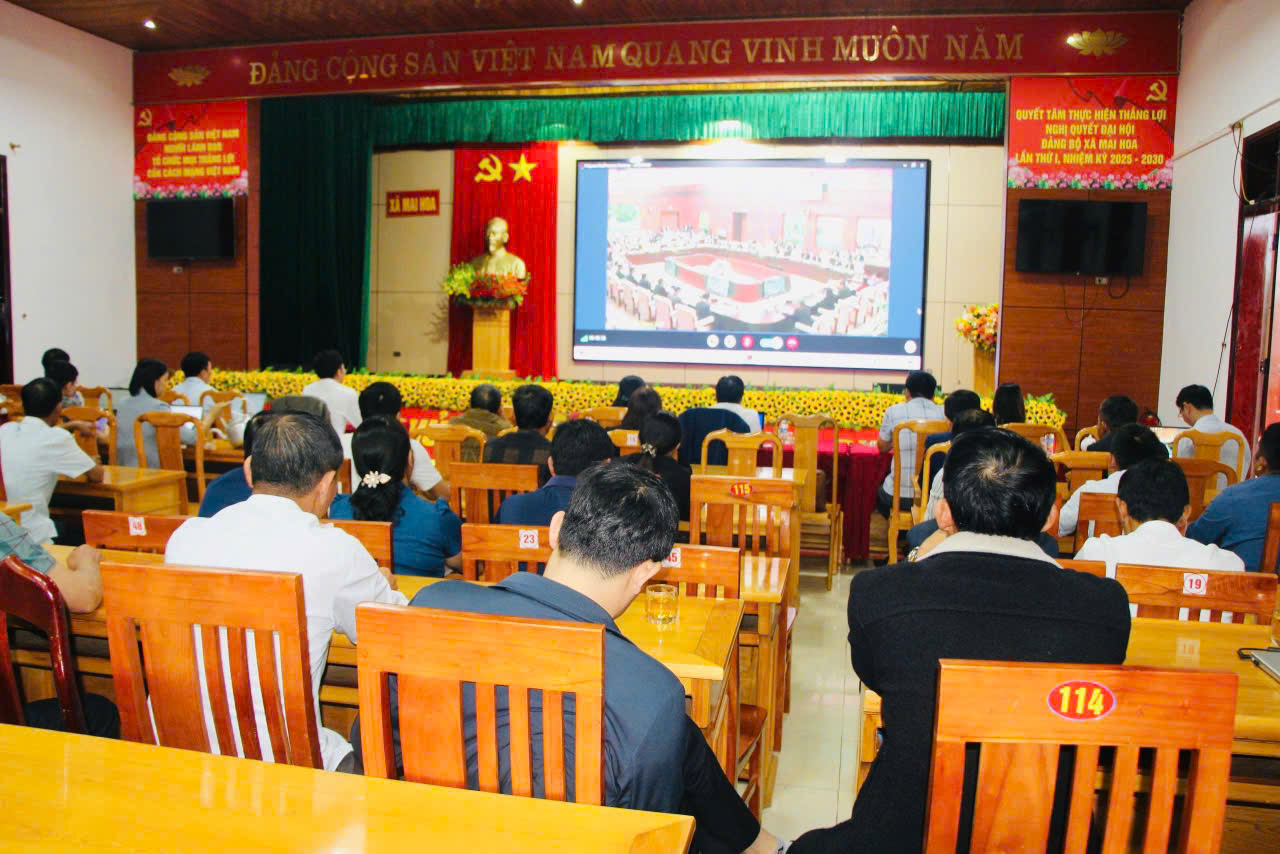 Tham gia điểm cầu trực tuyến xã Mai Hoa có các đồng chí Lê Thanh Nghị, Bí thư Đảng uỷ - Chủ tịch HĐND xã; Nguyễn Tuyết Lan, Phó bí thư thường trực Đảng uỷ; Phạm Ngọc Tạo, Phó bí thư – Chủ tịch UBND xã; Ban Chỉ đạo bầu cử, Ủy ban Bầu cử xã; các tiểu ban giúp việc; tổ trưởng các Tổ bầu cử; cán bộ, công chức tham mưu công tác bầu cử; bí thư chi bộ, trưởng thôn, trưởng ban công tác Mặt trận và các đoàn thể các thôn trên địa bàn.