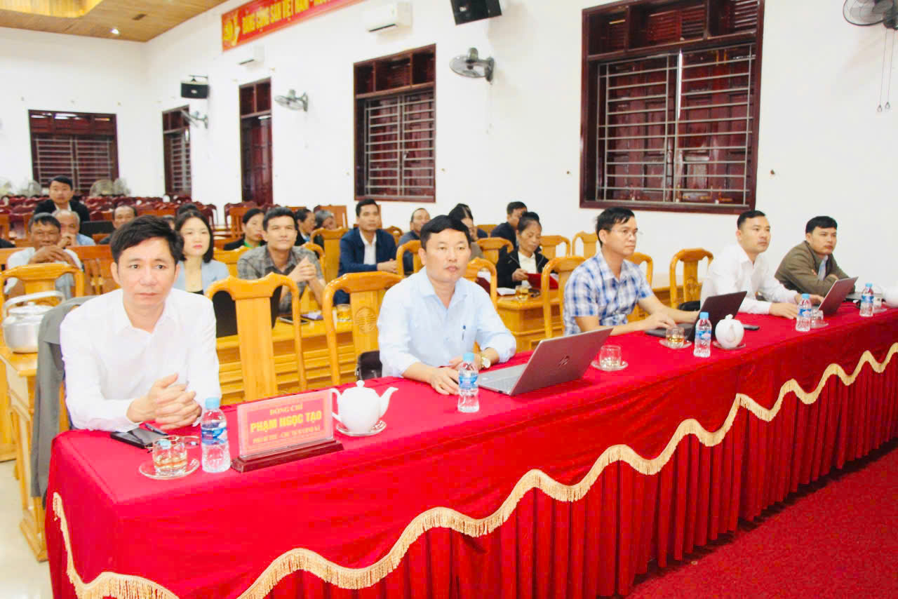 Cán bộ tham gia điểm cầu trực tuyến xã Mai Hoa