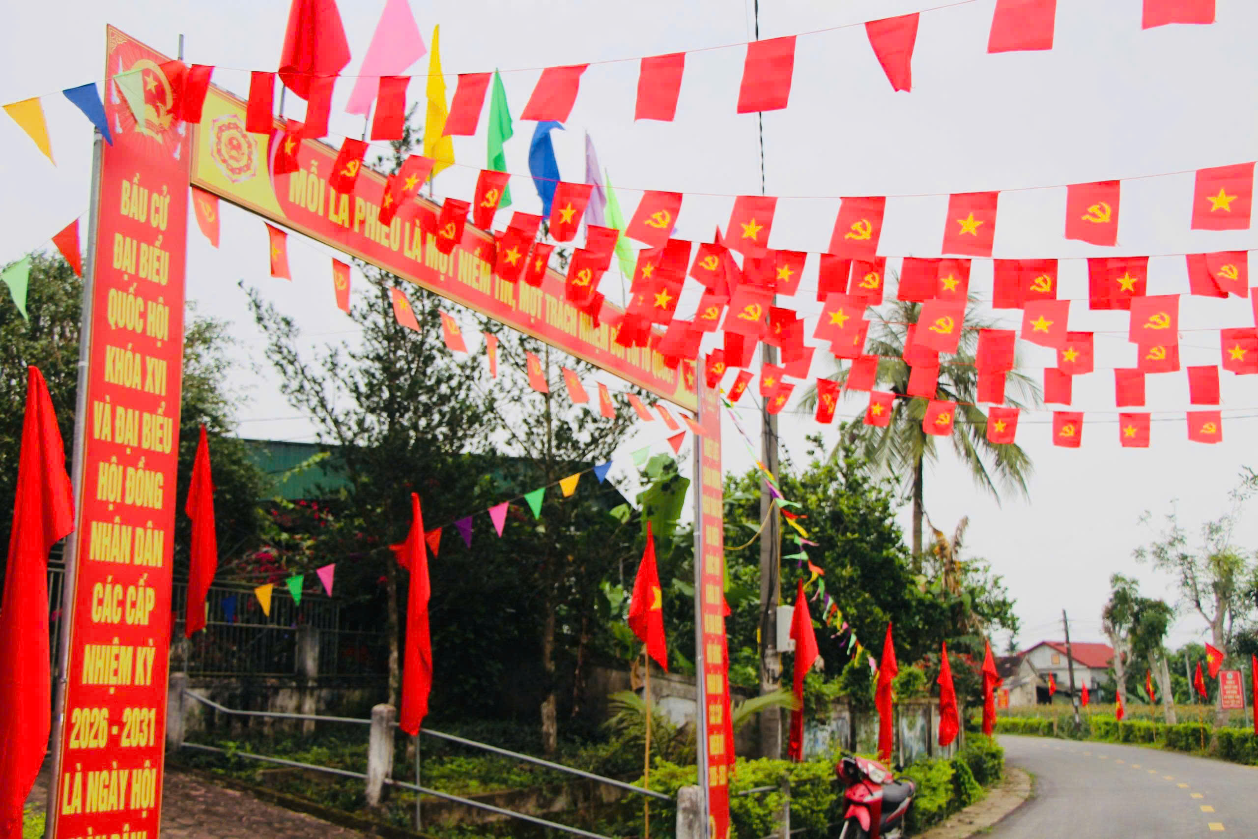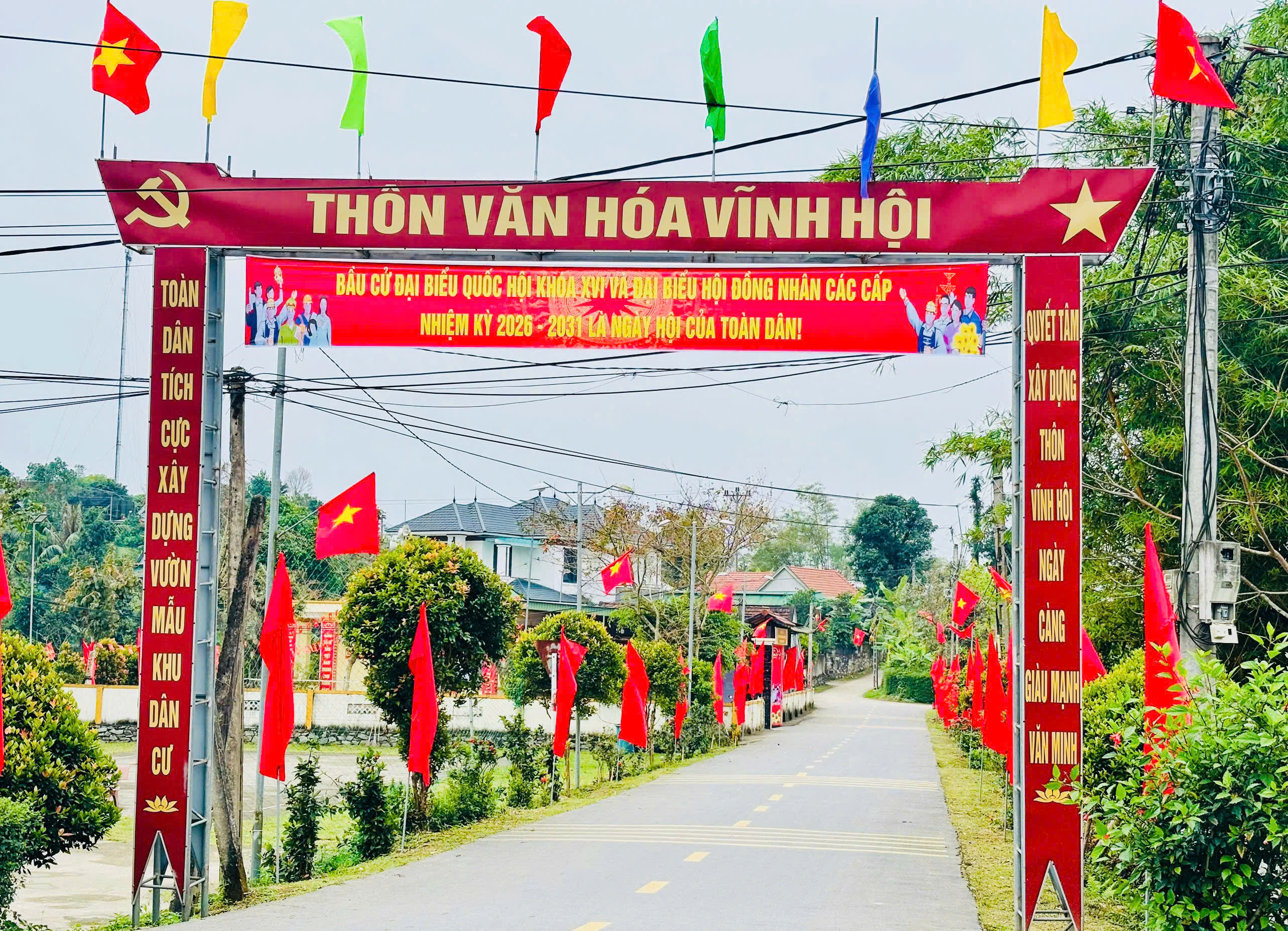 Hướng tới ngày bầu cử Quốc hội và HĐND các cấp, các đơn vị, các thôn còn phát động nhiều phong trào thi đua và xây dựng các công trình chào mừng; các cơ quan đơn vị ngoài trang trí rộn ràng còn tu sửa, vệ sinh khuôn viên sạch đẹp; nhất là các thôn, cụm dân cư đã đồng loạt ra quân vệ sinh đường làng ngõ xóm, đồng thời tiến hành treo băng rôn khẩu hiệu, cờ trên tuyến đường, trước cổng nhà… góp phần tạo phong quang sạch đẹp và không khí rộn ràng cho ngày hội bầu cử trên địa bàn xã.