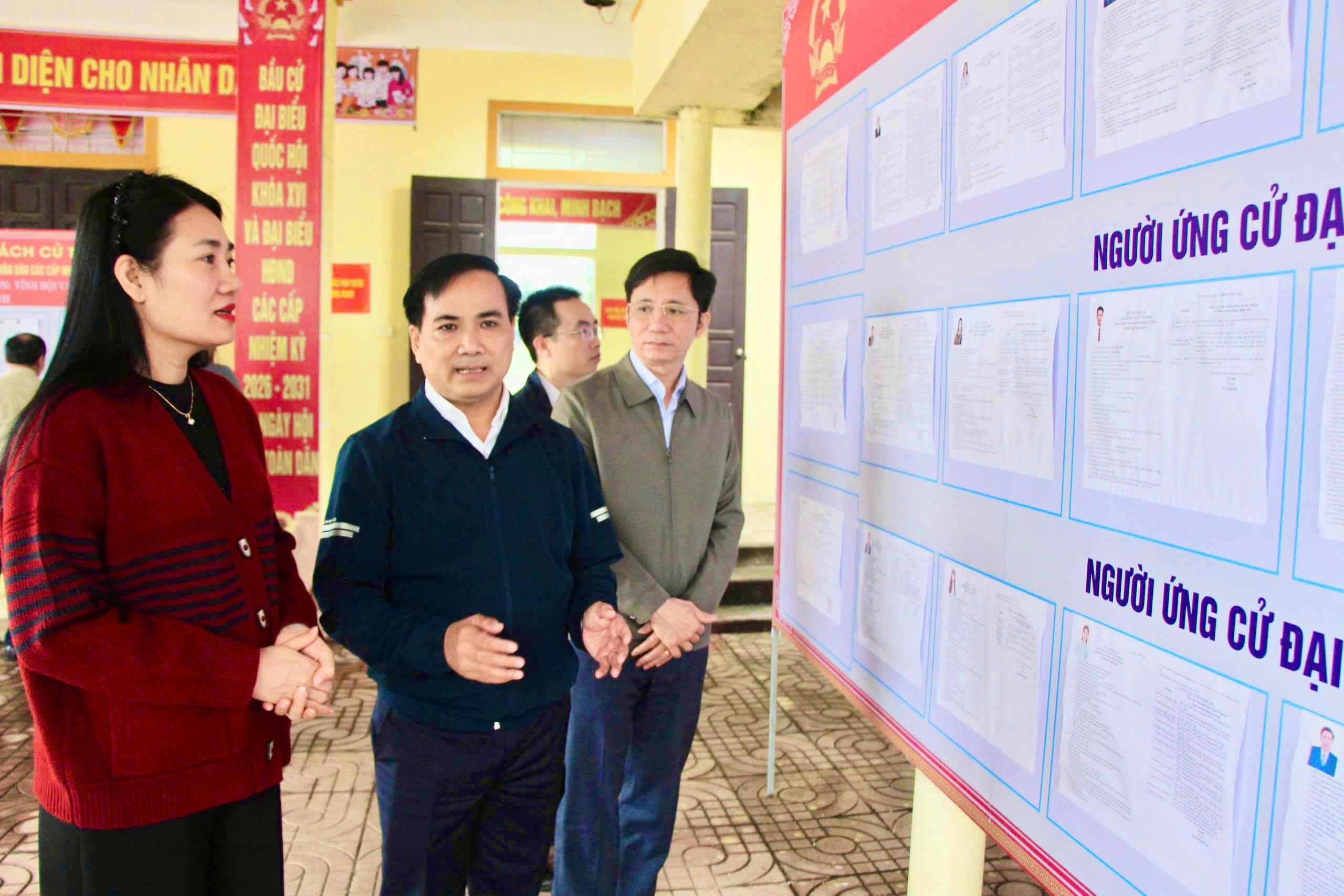 Lãnh đạo tỉnh và Lãnh đạo xã kiểm tra công tác chuẩn bị bầu cử tại các khu phục bỏ phiếu