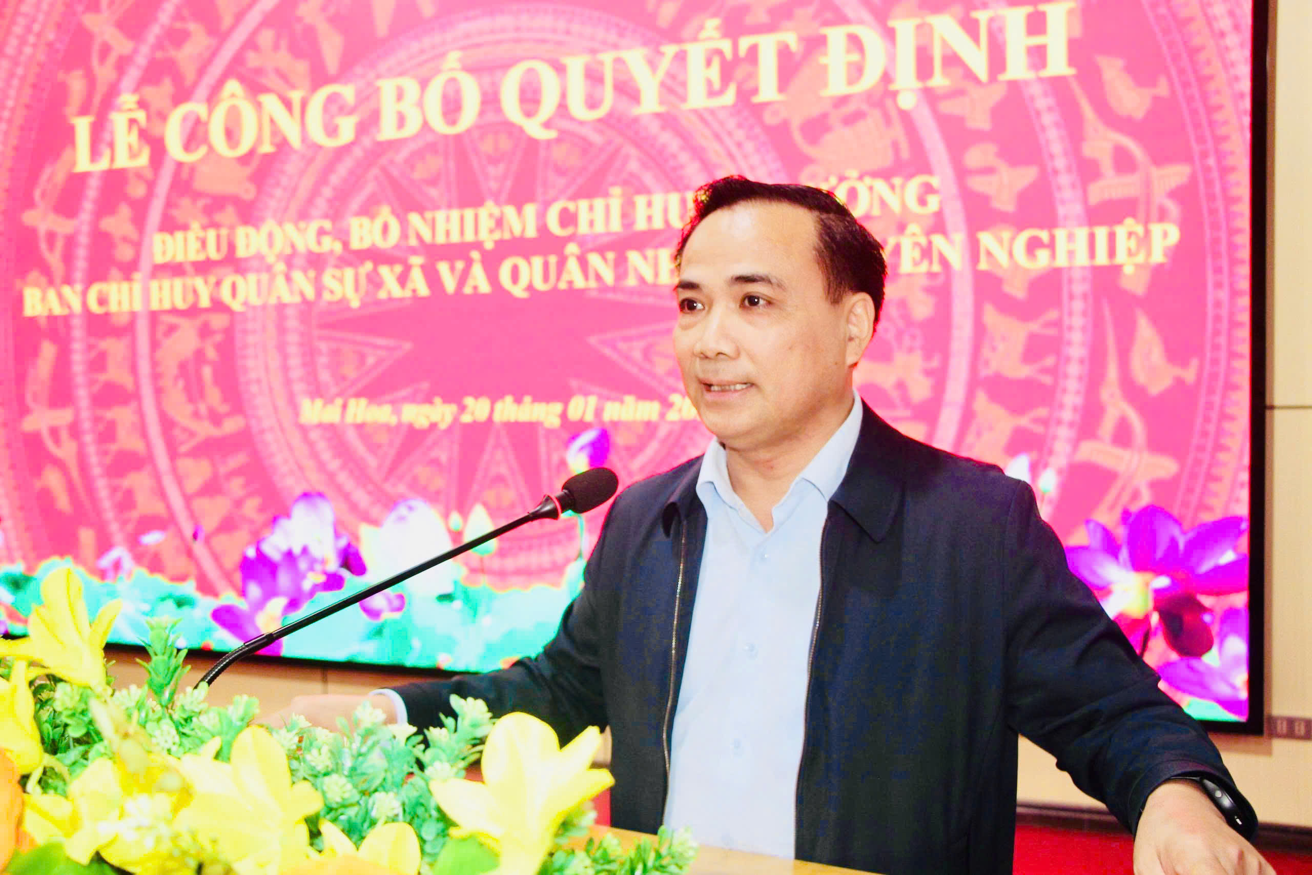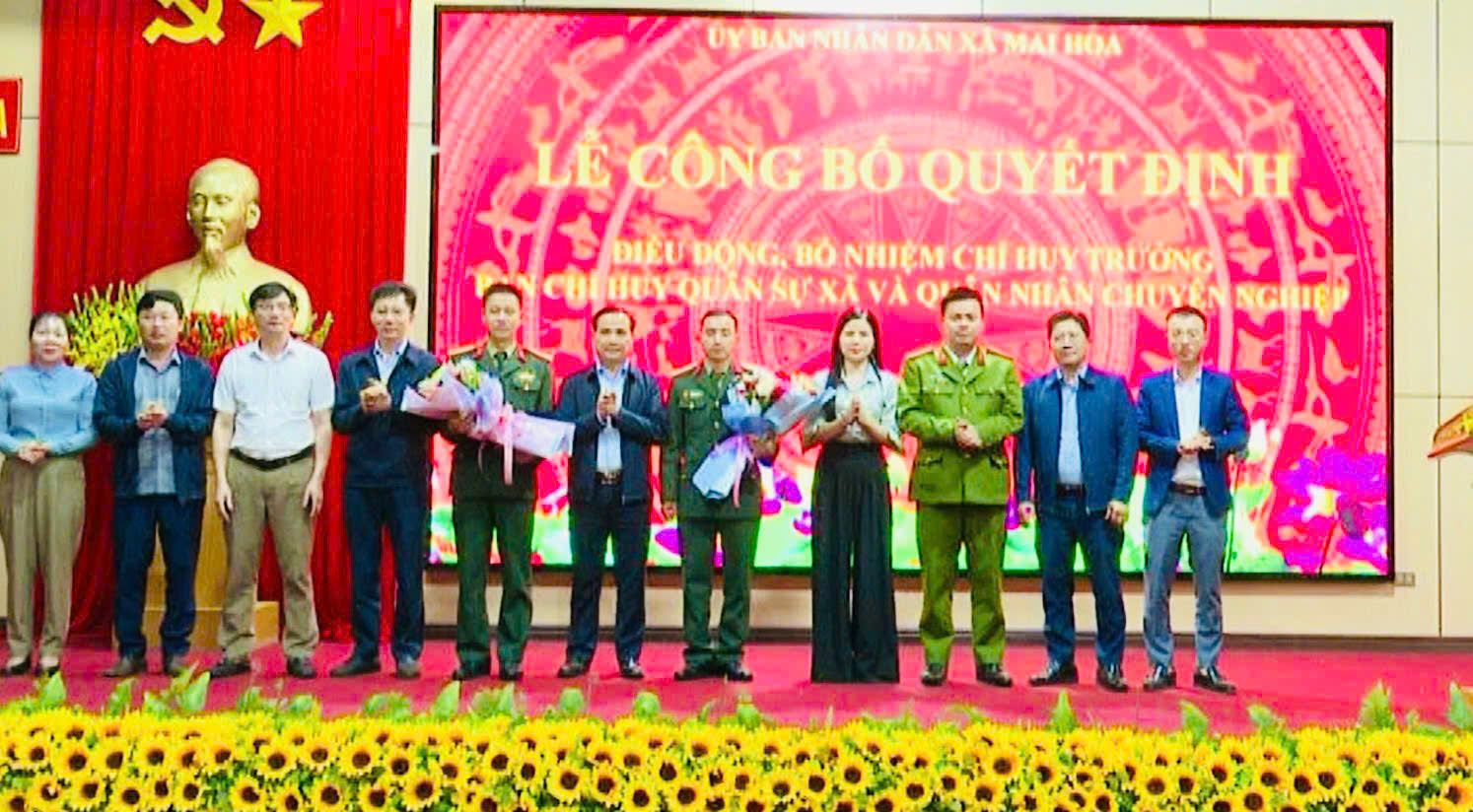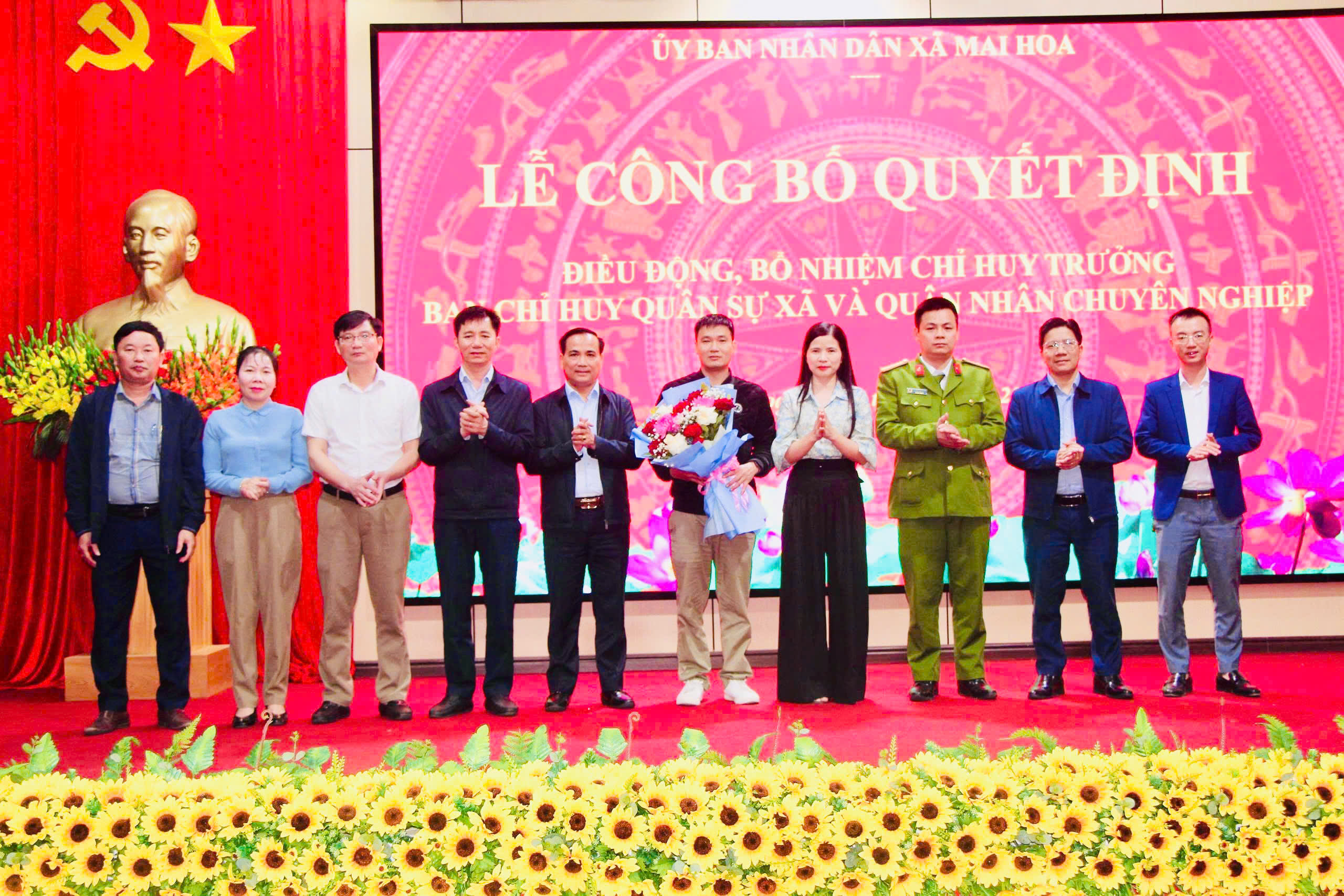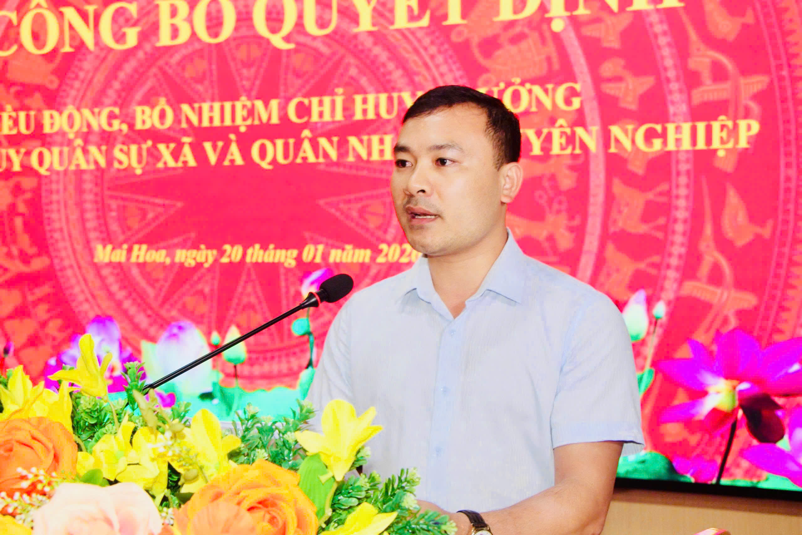 Tại buổi lễ, UBND xã đã công bố quyết định của Chính uỷ Quân khu 4 về việc điều động, bổ nhiệm Trung tá Trần Quốc Tuấn, Trợ lý Dân vận - Ban chỉ huy phòng thủ khu vực 2 Vũ Quang bộ chỉ huy quân sự tỉnh giữ chức vụ Chỉ huy trưởng BCHQS xã Mai Hoa.