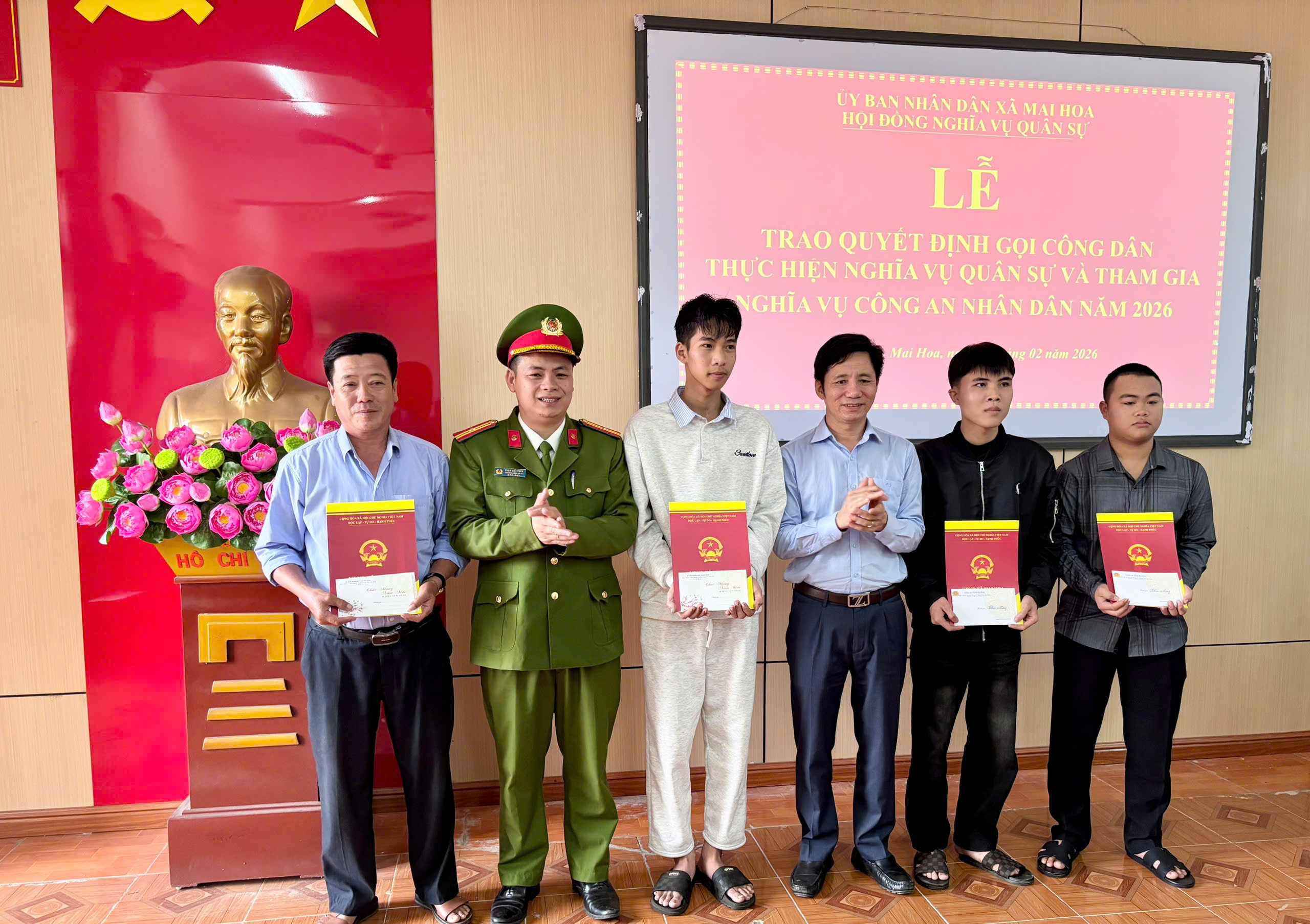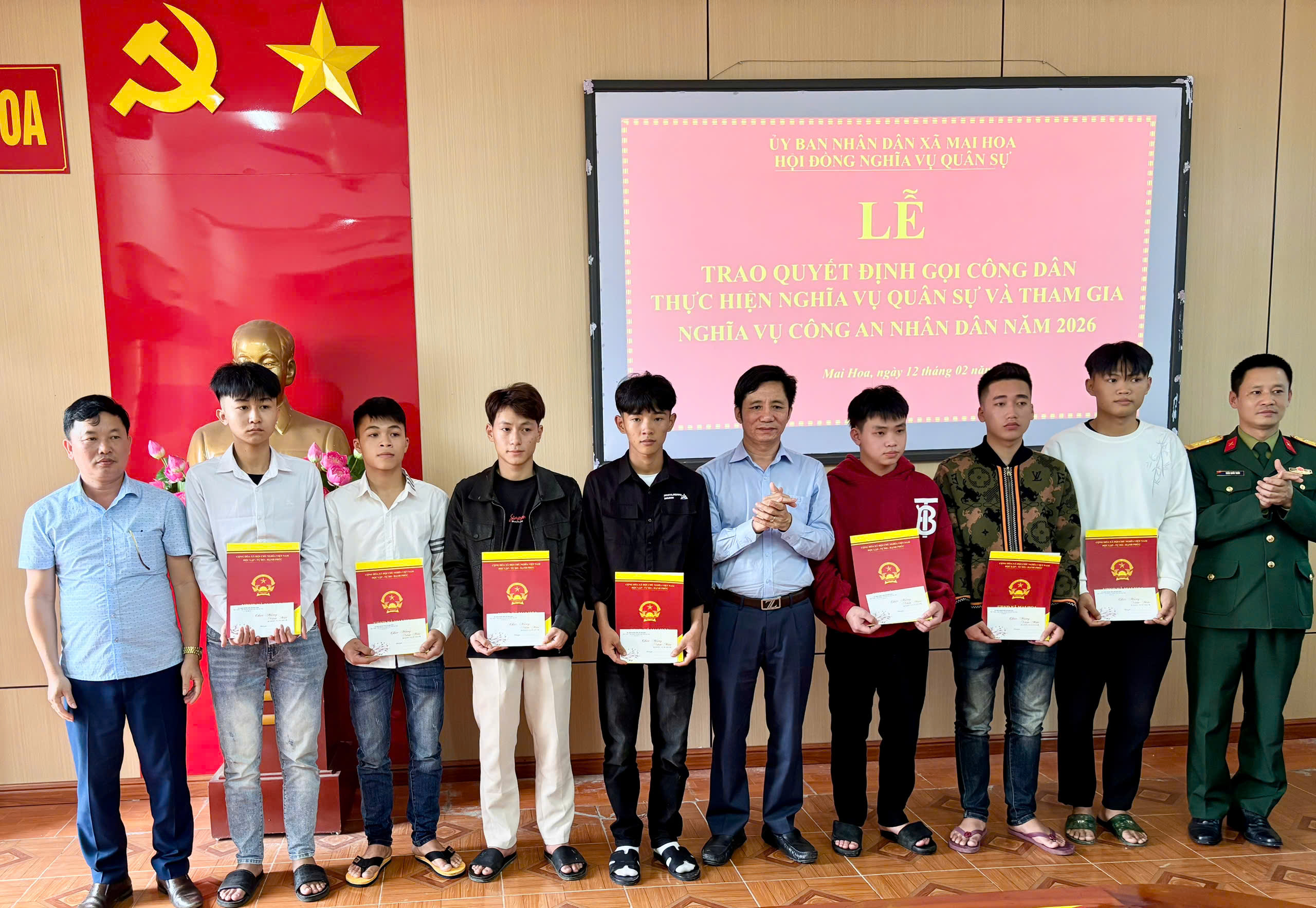 Năm 2026 xã Mai Hoa được giao chỉ tiêu 12 công dân nhập ngũ, trong đó Quân sự 8, Công an 4.