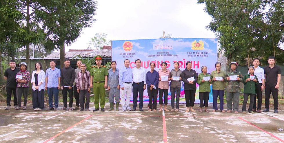 Tại buổi lễ, ông Nguyễn Việt Đức, đại diện doanh nghiệp VICTOR STEEL(Úc), đã trao tặng 13 con bò cho 13 hộ nghèo, cận nghèo và hộ có hoàn cảnh đặc biệt khó khăn của xã Mai Hoa, với tổng trị giá 200 triệu đồng.