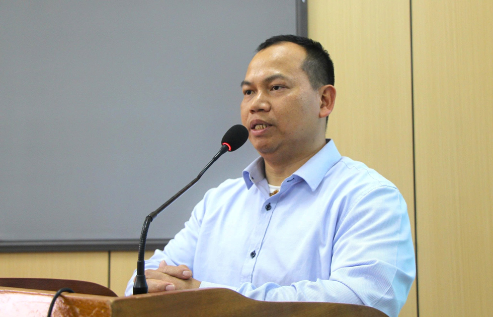 Đại diện chính quyền địa phương phát biểu tại lễ trao tặng bò