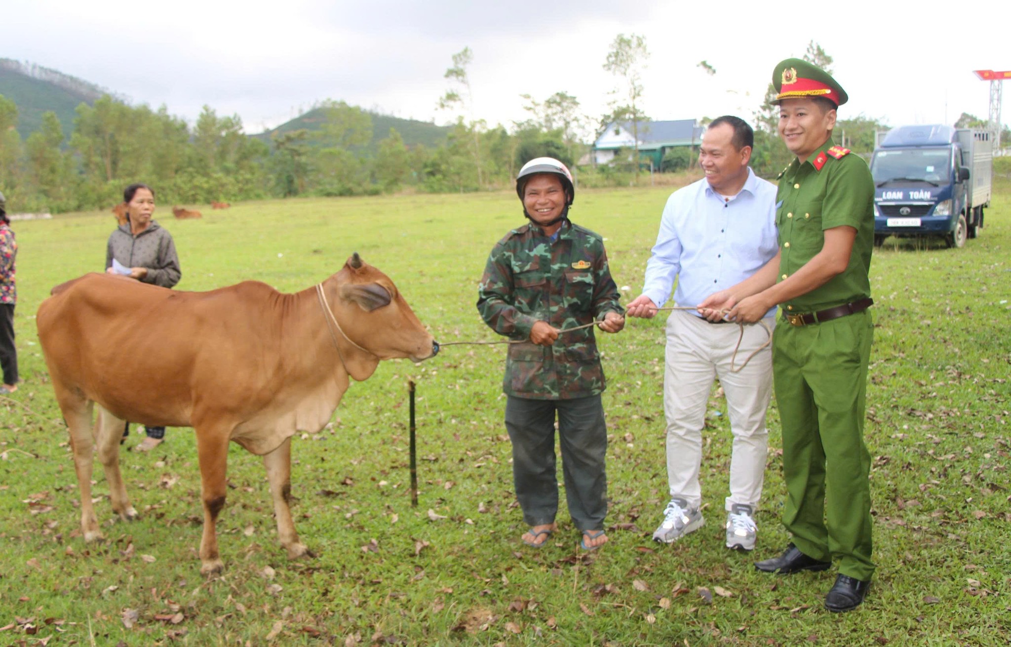 Nhà tài trợ, cấp uỷ, chính quyền địa phương trao tặng bò cho hộ dân