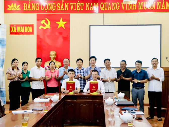 Cũng tại cuộc họp, UBND xã Mai Hoa và Hợp tác xã dịch vụ tổng hợp Như Gia đã tiến hành ký kết biên bản ghi nhớ hợp tác về việc liên kết cung cấp con giống, chuyển giao kỹ thuật nuôi, thiết bị chuồng trại chăn nuôi và bao tiêu sản phẩm trứng gà siêu đẻ.