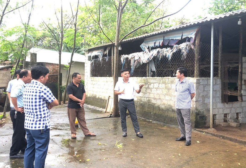 Lãnh đạo UBND xã và HTX Dịch vụ tổng hợp Như Gia khảo sát tại hộ chăn nuôi Trần Minh Hải thôn Cẩm Trang